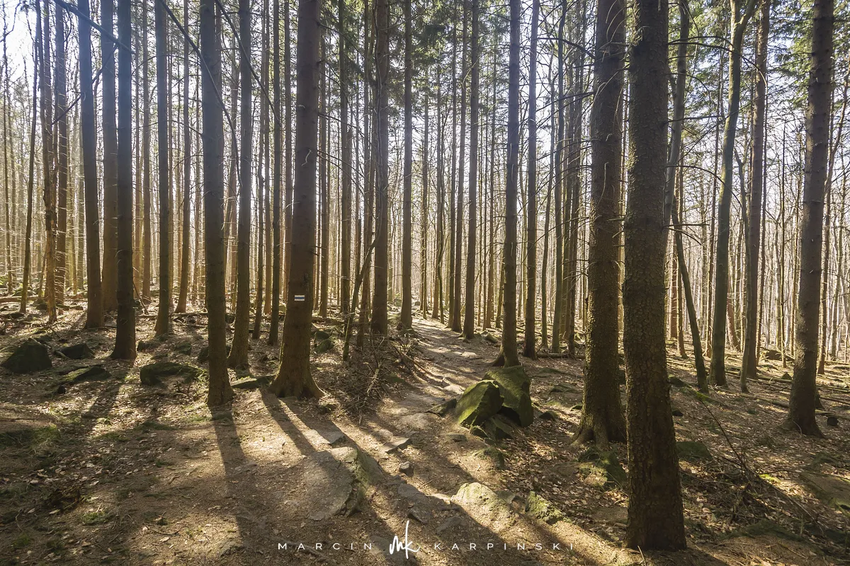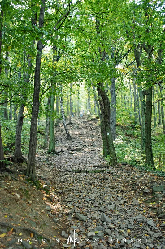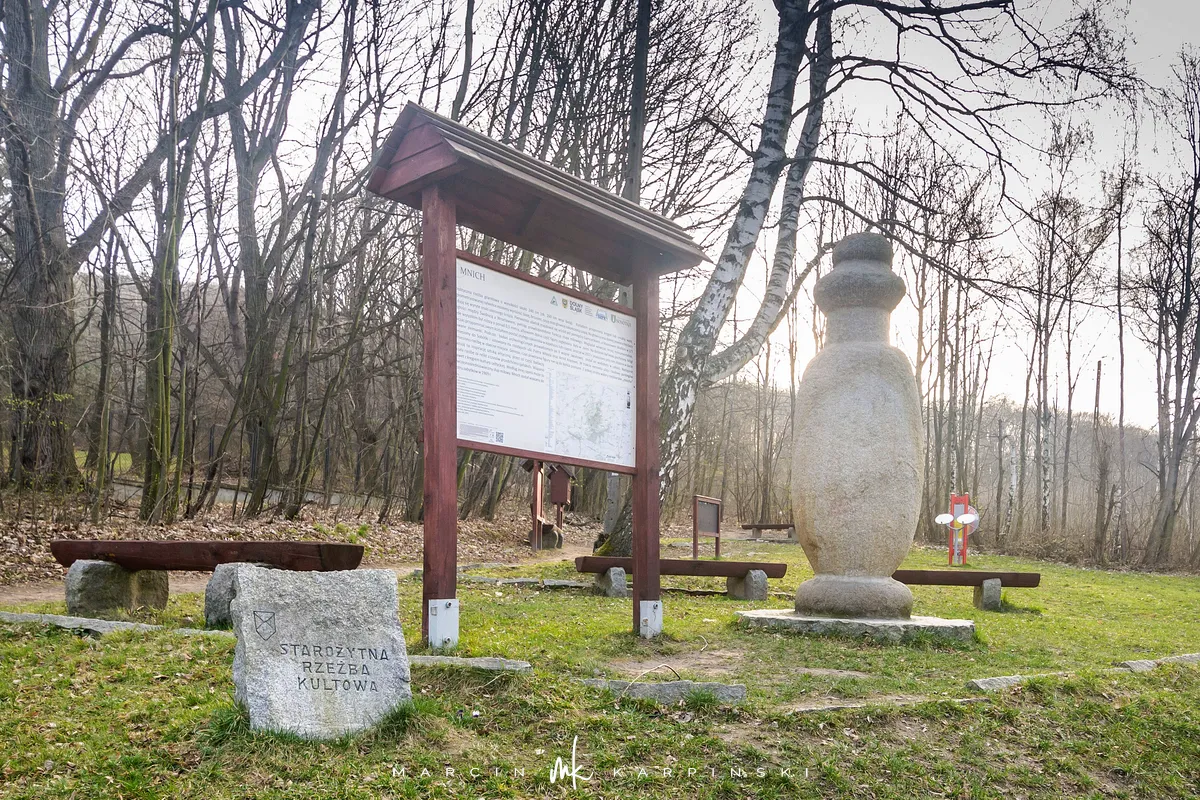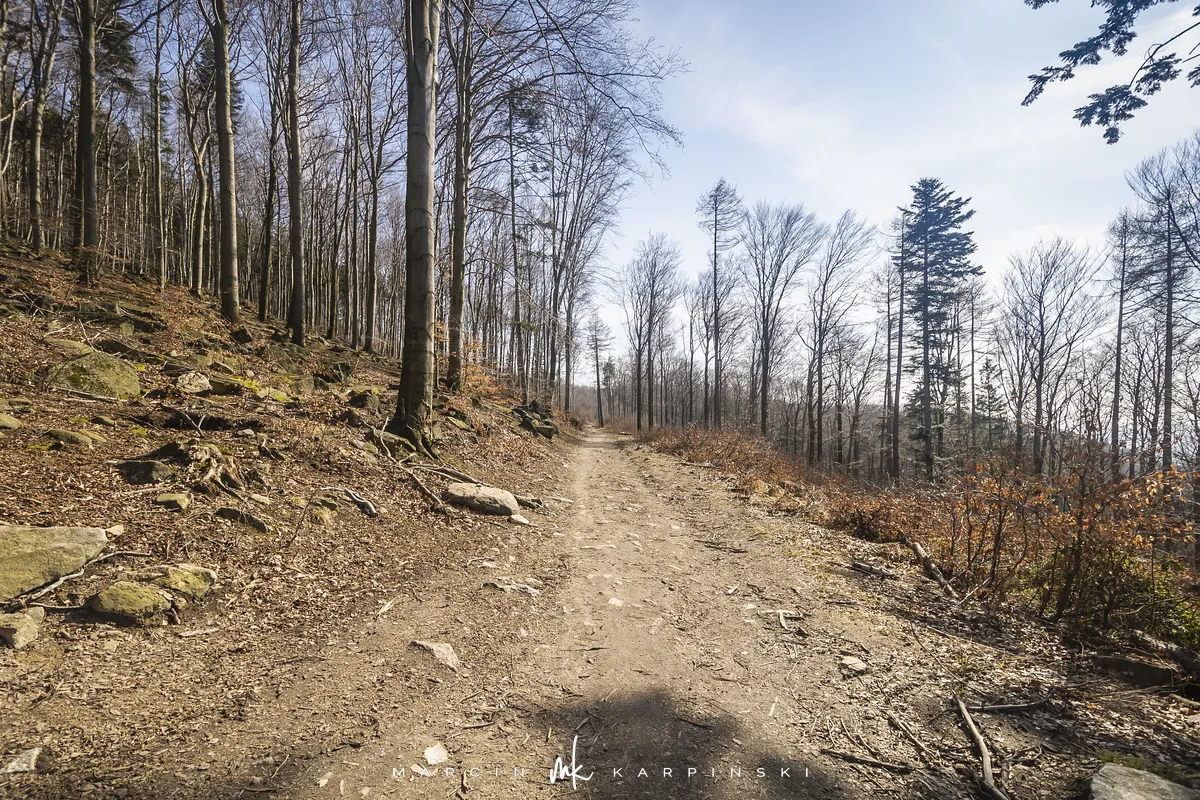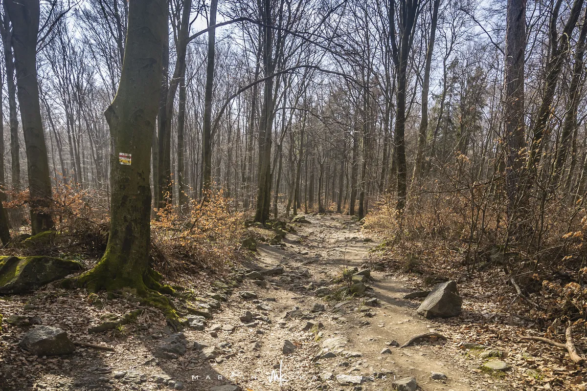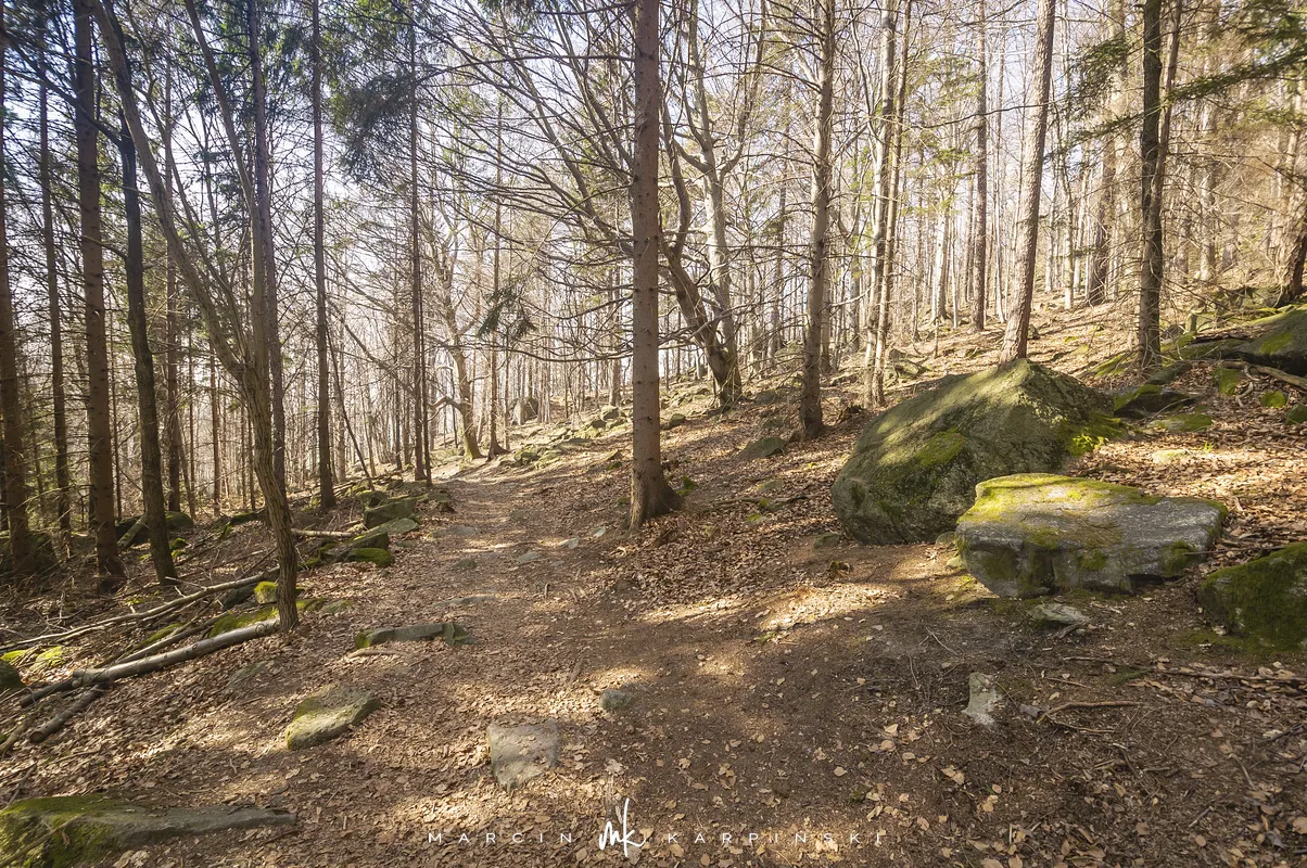 Do końca wędrówki pozostało nam około 7 kilometrów Traktem Bolka. Od parkingu na Przełęczy Tąpadła kierujemy się na czarny szlak prowadzący do Przełęczy pod Wieżycą. Obchodzimy Ślężę i Wieżycę od wschodniej strony. Maszeruje się przyjemnie, choć zmęczenie daje się już trochę we znaki. Na Rozdrożu Holteia naszą drogę przecina czerwony szlak z Sulistrowic na Ślężę. W końcowym odcinku wędrówki mijamy po lewej stronie Źródło Joanna. Gdy już między drzewami widoczne są zabudowania Sobótki, aby nieco skrócić drogę, schodzimy ze szlaku i skręcamy w ścieżkę w prawo. Po kilku minutach wychodzimy niecałe sto metrów od parkingu, przy rzeźbie Mnicha.