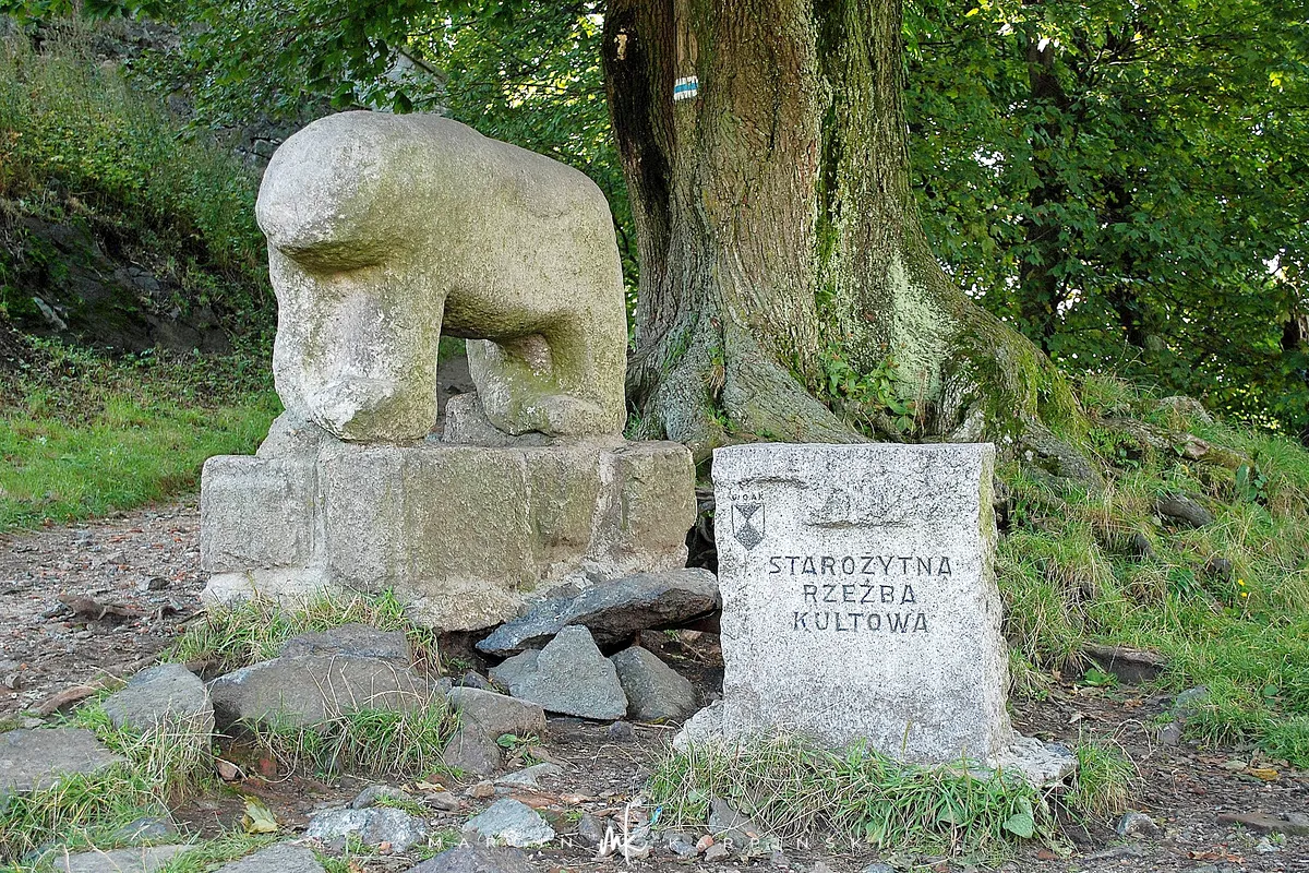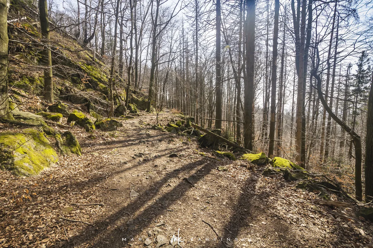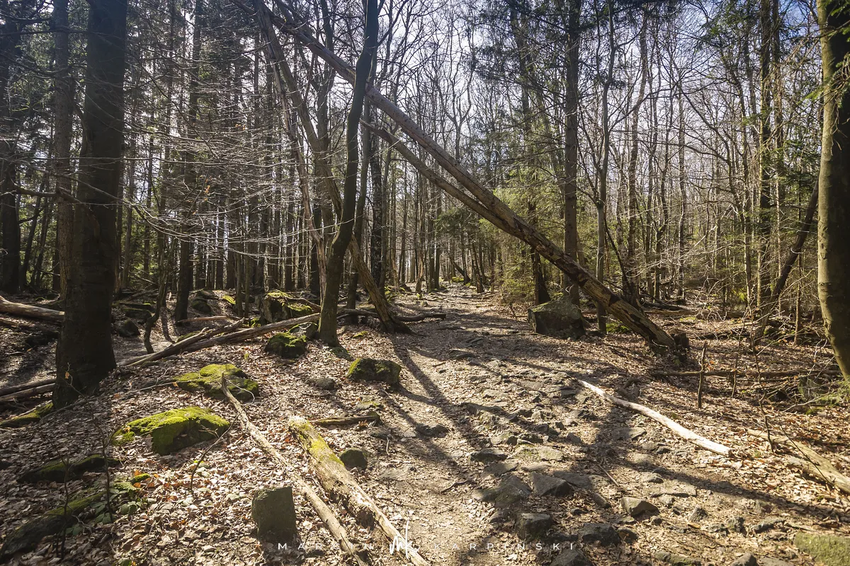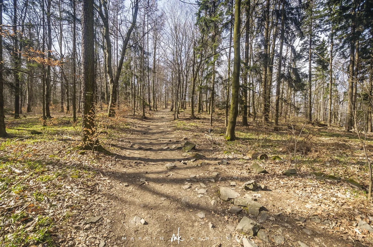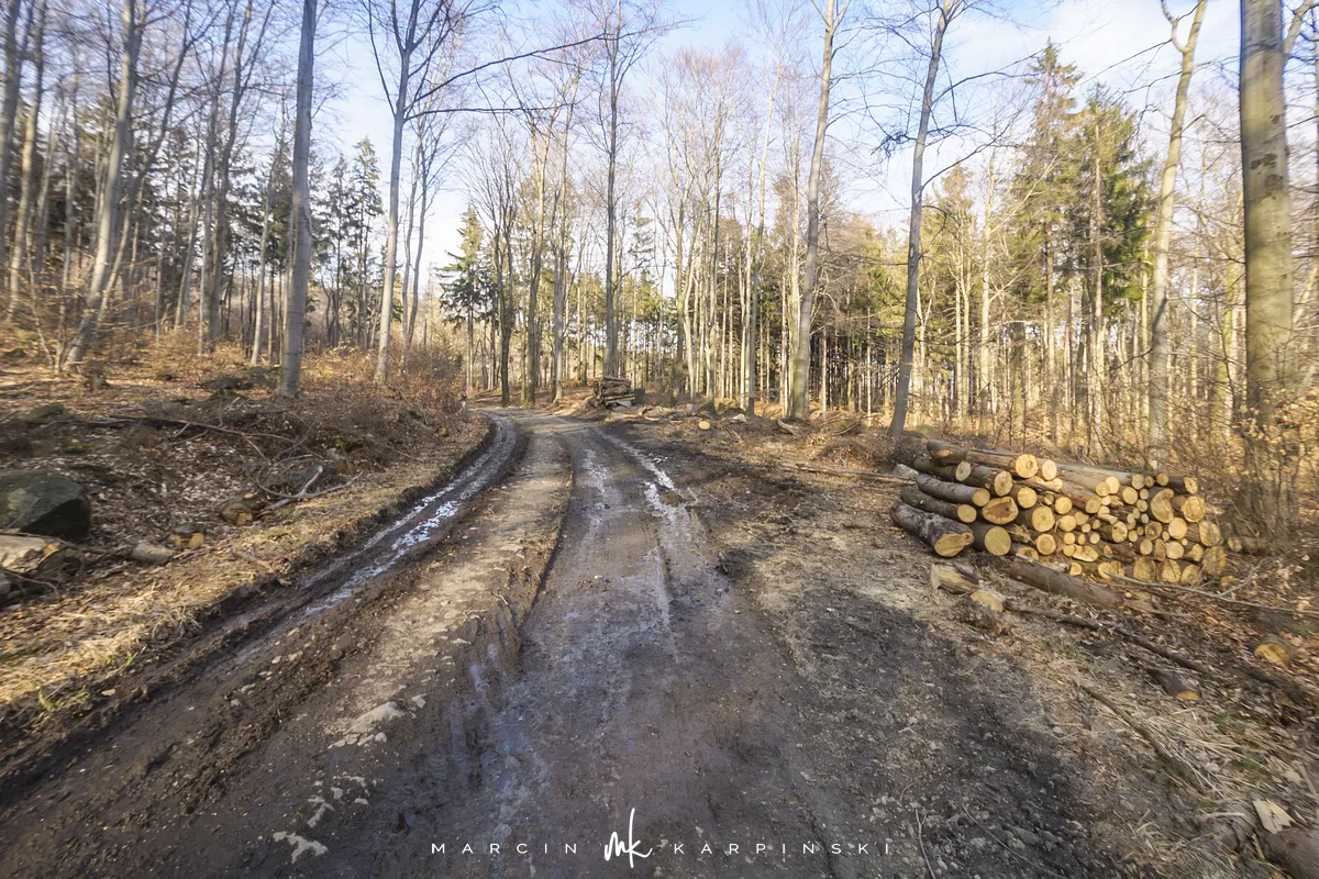 Do końca wędrówki pozostało nam około 7 kilometrów Traktem Bolka. Od parkingu na Przełęczy Tąpadła kierujemy się na czarny szlak prowadzący do Przełęczy pod Wieżycą. Obchodzimy Ślężę i Wieżycę od wschodniej strony. Maszeruje się przyjemnie, choć zmęczenie daje się już trochę we znaki. Na Rozdrożu Holteia naszą drogę przecina czerwony szlak z Sulistrowic na Ślężę. W końcowym odcinku wędrówki mijamy po lewej stronie Źródło Joanna. Gdy już między drzewami widoczne są zabudowania Sobótki, aby nieco skrócić drogę, schodzimy ze szlaku i skręcamy w ścieżkę w prawo. Po kilku minutach wychodzimy niecałe sto metrów od parkingu, przy rzeźbie Mnicha.