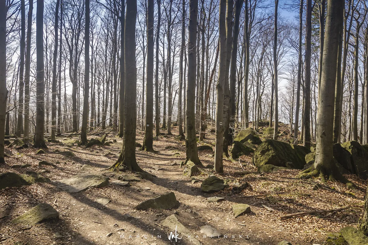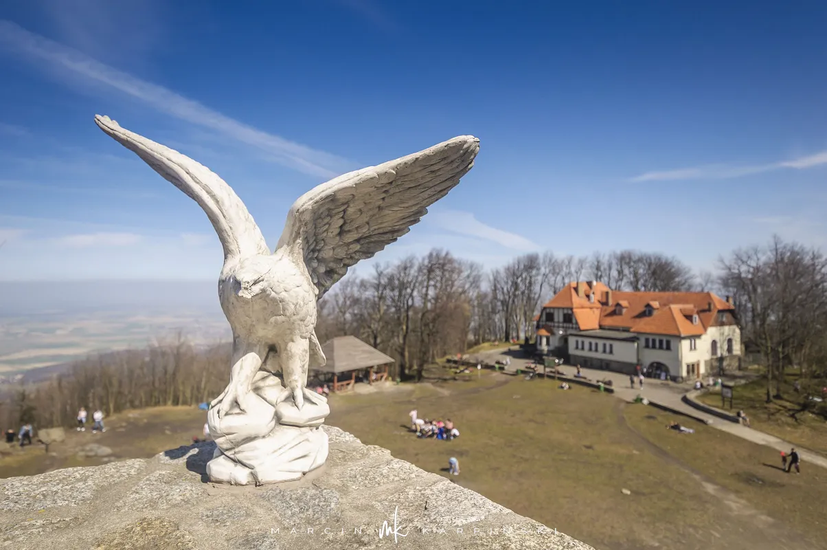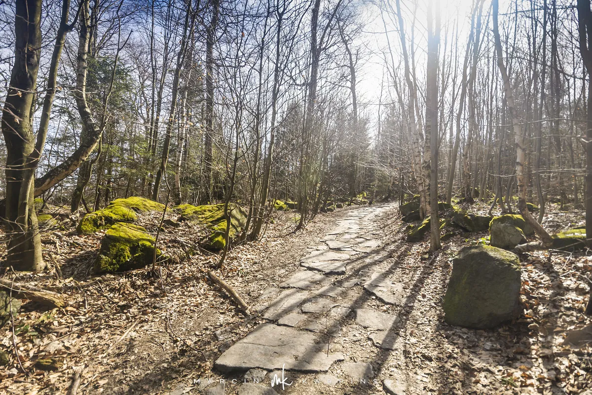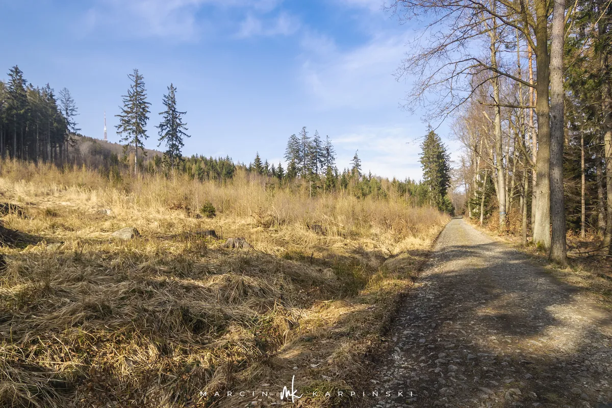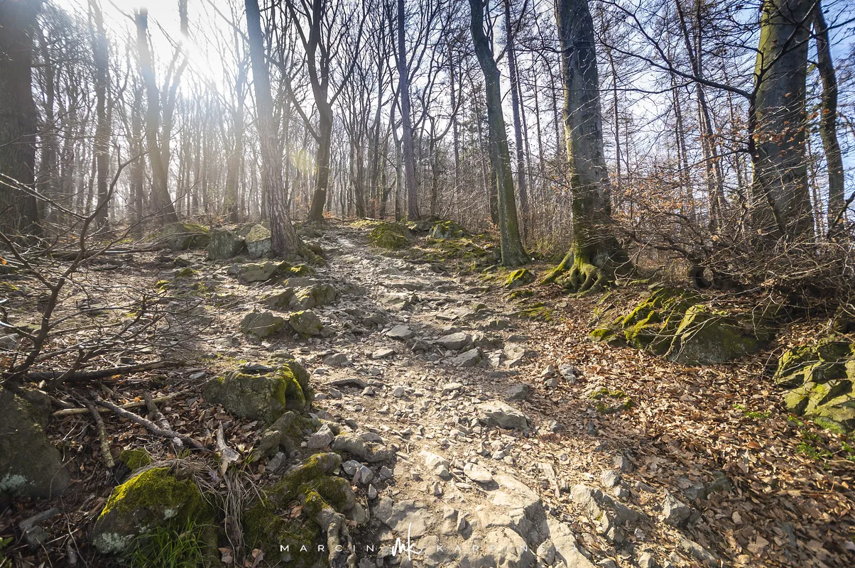 Do końca wędrówki pozostało nam około 7 kilometrów Traktem Bolka. Od parkingu na Przełęczy Tąpadła kierujemy się na czarny szlak prowadzący do Przełęczy pod Wieżycą. Obchodzimy Ślężę i Wieżycę od wschodniej strony. Maszeruje się przyjemnie, choć zmęczenie daje się już trochę we znaki. Na Rozdrożu Holteia naszą drogę przecina czerwony szlak z Sulistrowic na Ślężę. W końcowym odcinku wędrówki mijamy po lewej stronie Źródło Joanna. Gdy już między drzewami widoczne są zabudowania Sobótki, aby nieco skrócić drogę, schodzimy ze szlaku i skręcamy w ścieżkę w prawo. Po kilku minutach wychodzimy niecałe sto metrów od parkingu, przy rzeźbie Mnicha.