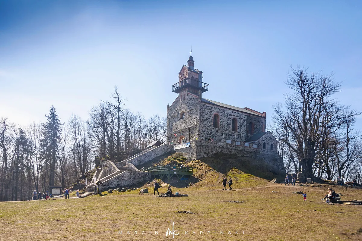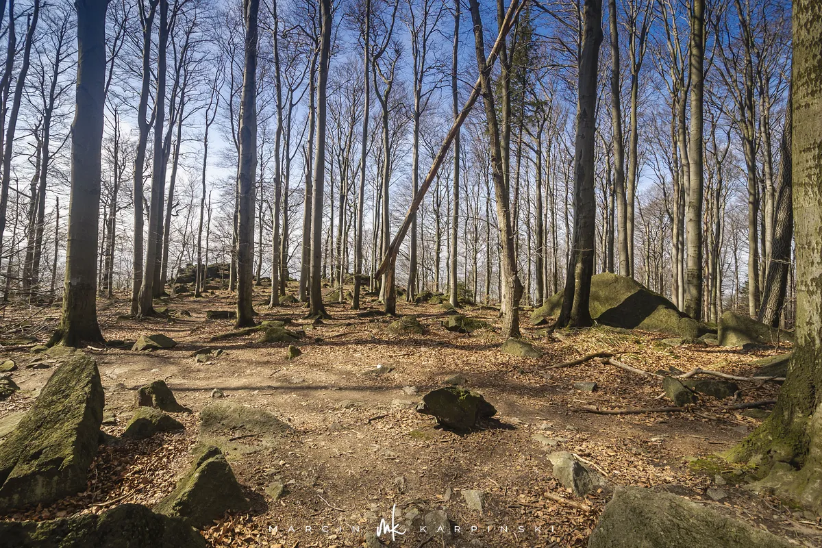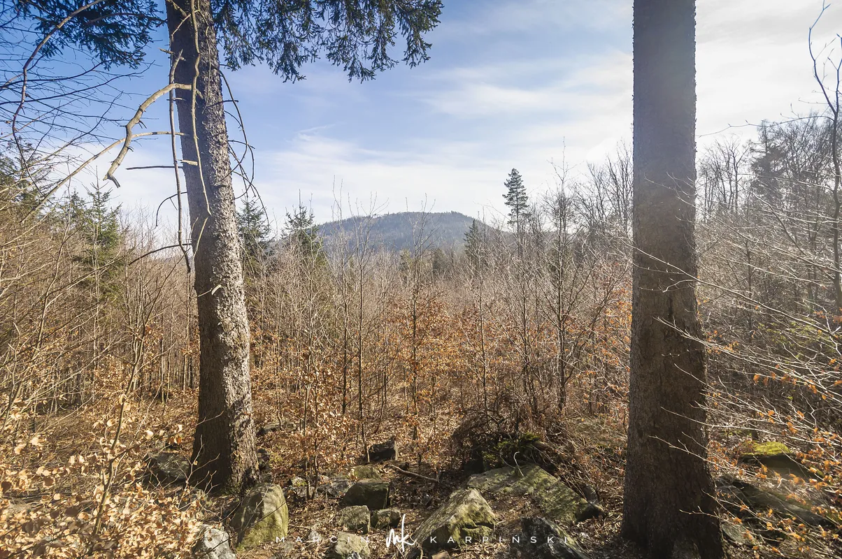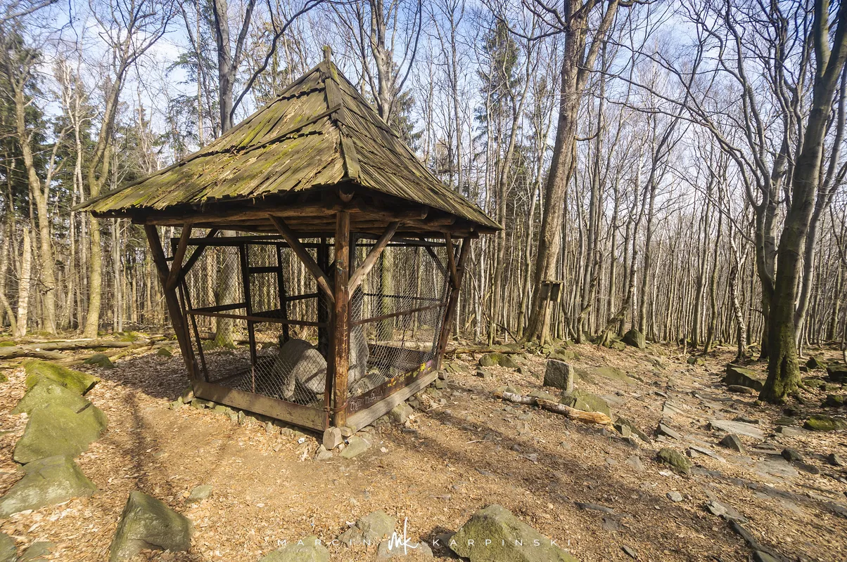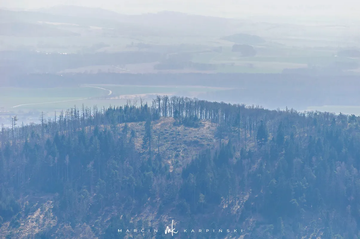 Do końca wędrówki pozostało nam około 7 kilometrów Traktem Bolka. Od parkingu na Przełęczy Tąpadła kierujemy się na czarny szlak prowadzący do Przełęczy pod Wieżycą. Obchodzimy Ślężę i Wieżycę od wschodniej strony. Maszeruje się przyjemnie, choć zmęczenie daje się już trochę we znaki. Na Rozdrożu Holteia naszą drogę przecina czerwony szlak z Sulistrowic na Ślężę. W końcowym odcinku wędrówki mijamy po lewej stronie Źródło Joanna. Gdy już między drzewami widoczne są zabudowania Sobótki, aby nieco skrócić drogę, schodzimy ze szlaku i skręcamy w ścieżkę w prawo. Po kilku minutach wychodzimy niecałe sto metrów od parkingu, przy rzeźbie Mnicha.