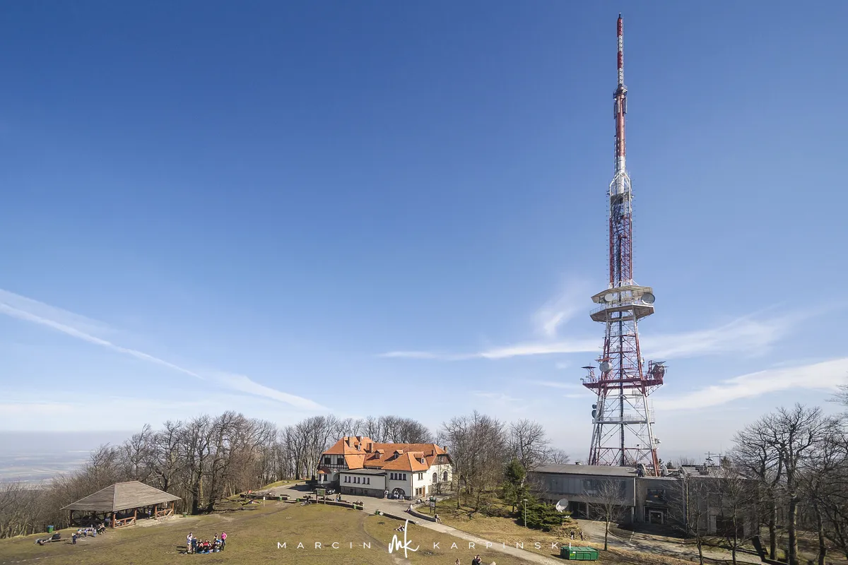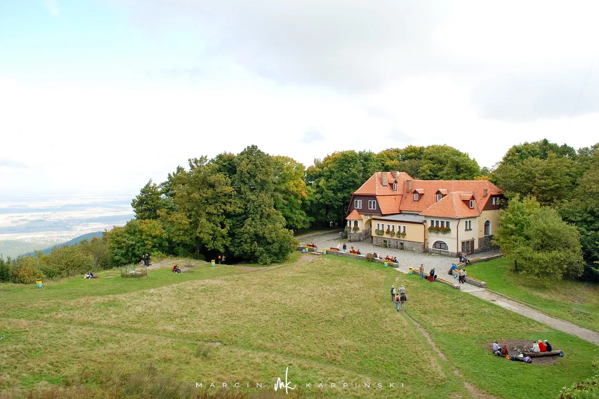 Na szczycie Ślęży zlokalizowanych jest kilka budowli. W 1837 roku postawiono na szczycie pierwsze schronisko. Obecne, trzecie już z kolei pochodzi z początku XX wieku. W dawniejszych czasach Ślęża pełniła funkcje obronne. Na miejscu średniowiecznej warowni w 1852 roku postawiono stojący do dziś kościół pod wezwaniem Nawiedzenia NMP. Obok kościoła znajdziemy kolejną rzeźbę kultową "Niedźwiedź". Charakterystycznym elemenetem Ślęży jest również 136 metrowy maszt antenowy centrum nadawczego. W 2000 roku polscy leśnicy ufundowali krzyż, który również stanął na szczycie. Na południe od kościoła, w odległości niecałych stu metrów znajduje się również wieża widokowa. Warto na nią wejść, gdyż widoki z niej są warte zobaczenia.