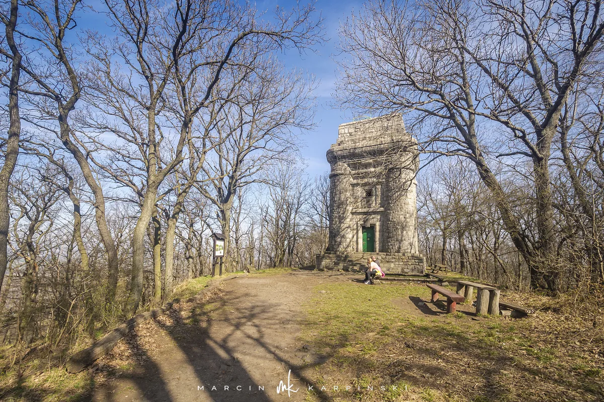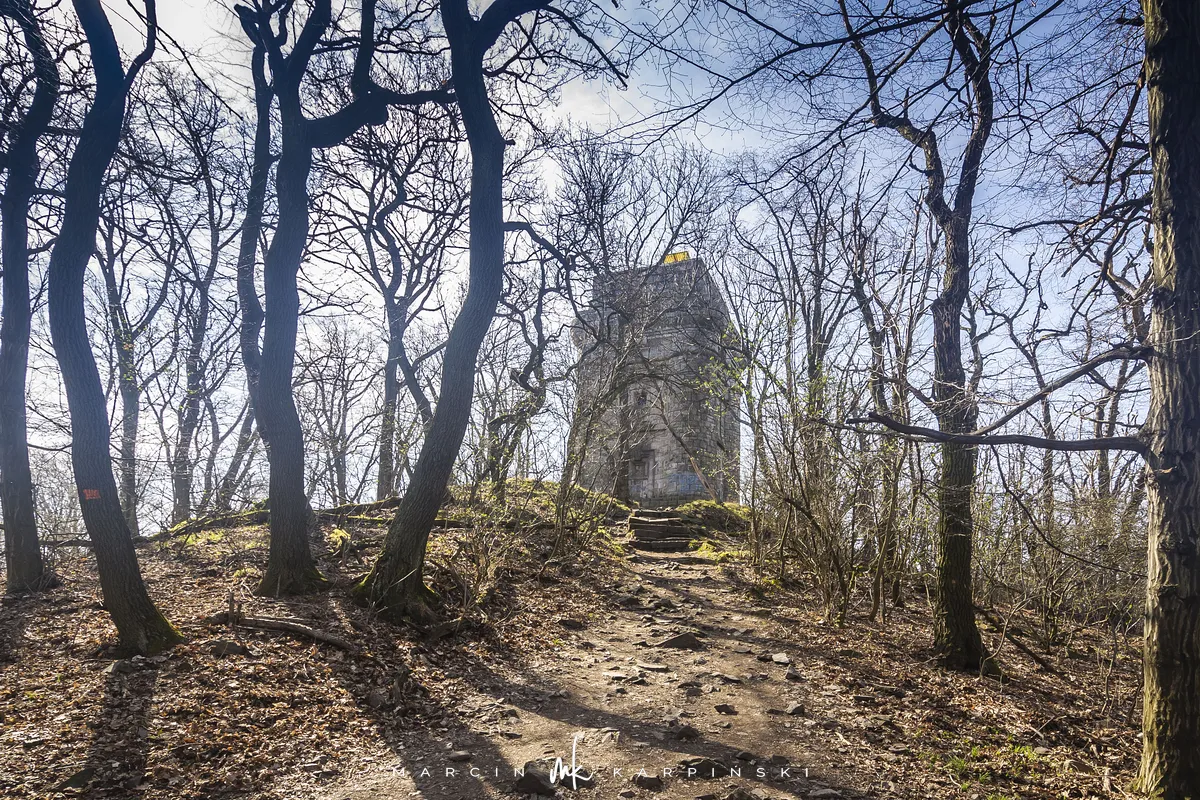 Samochód zostawiamy na parkingu w Sobótce przy ulicy Armii Krajowej. Kierujemy się asfaltową drogą na zachód. Mijamy po lewej stronie rzeźbę granitową Mnich. Pierwotnie stała wsród pól pomiędzy miejscowościami Garncarsko a Maniów Wielki i pełniła jak się wydaje funkcję słupa milowego. Po niecałym kilometrze dochodzimy do Domu Turysty "Pod Wierzycą". Tutaj wchodzimy na żółty szlak. Droga pnie się do góry po kamienistej leśnej ścieżce. Po kwadransie wchodzimy na Wieżycę (415 m n.p.m.). Na początku XX wieku wybudowano tutaj kamienną wieżę widokową, zwaną Wieżą Bismarcka. Ma wysokość 15 metrów. Za pierwszym razem, gdy byliśmy tu w 2008 roku wieża była otwarta i można było wejść do środka. Za drugim mogliśmy ją tylko zobaczyć z zewnatrz.