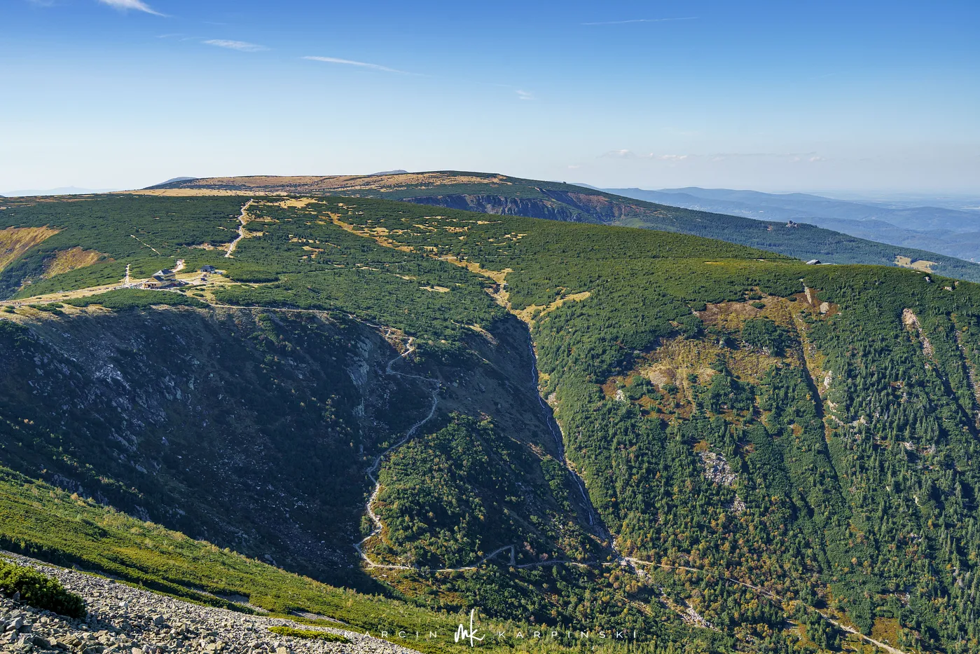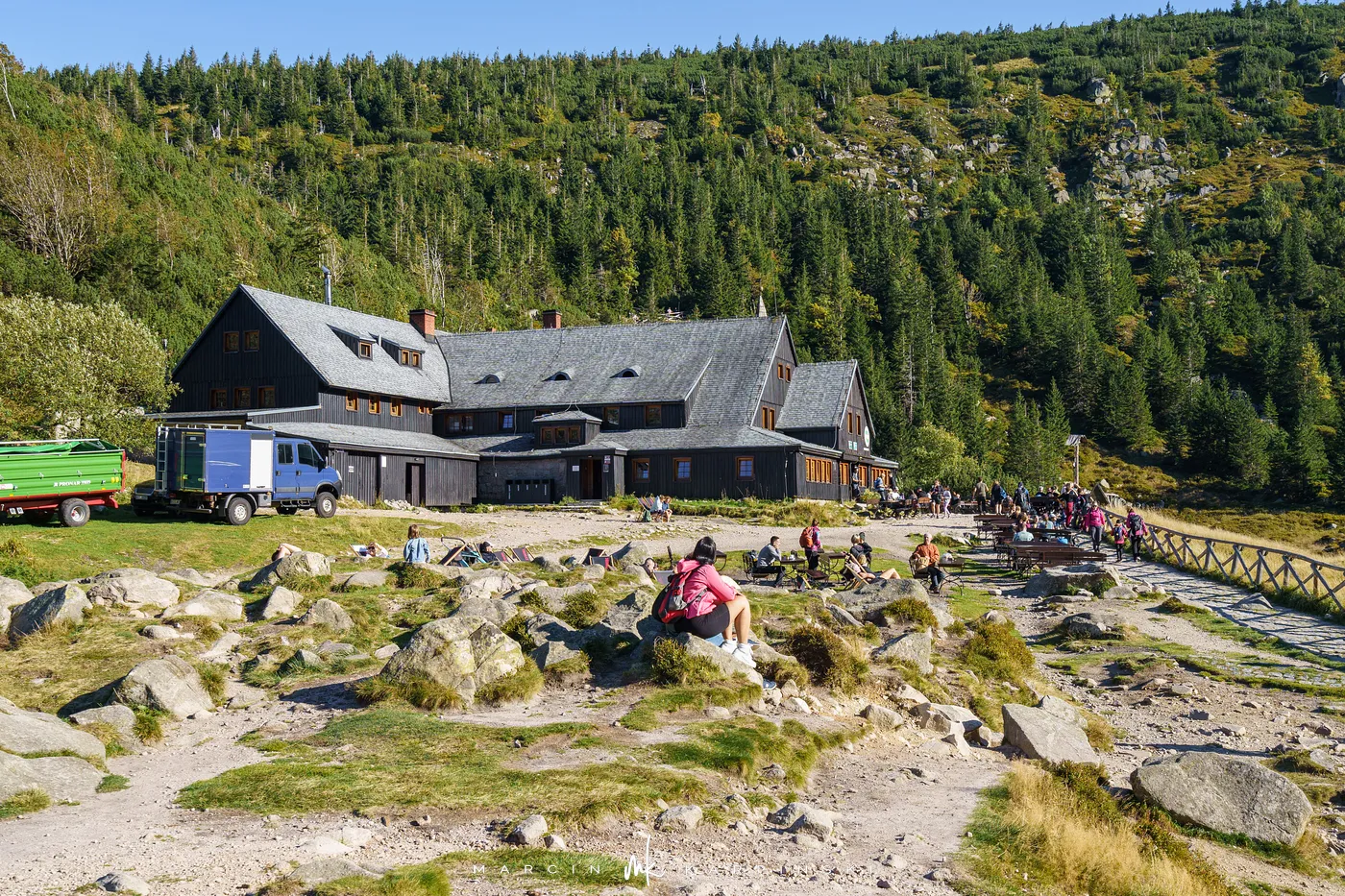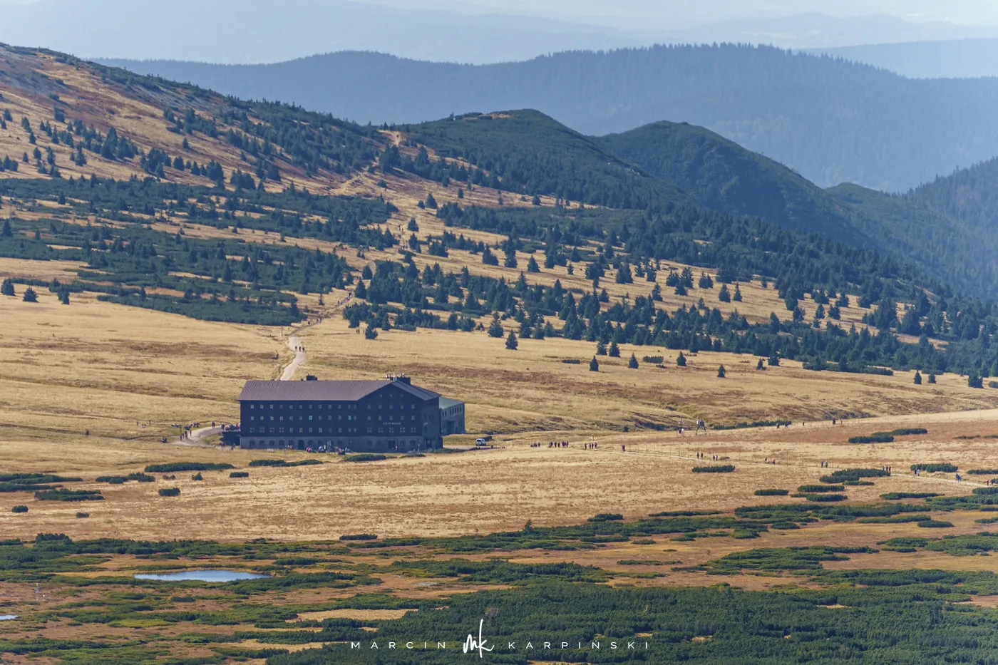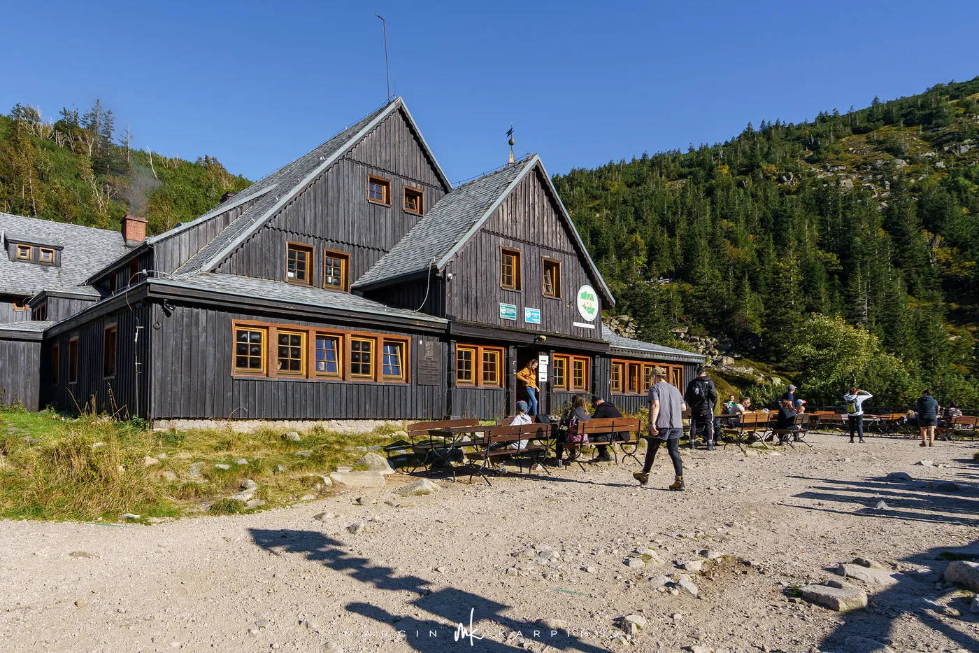 Po krótkim odpoczynku przy schronisku ruszamy w dół. Niebieski szlak prowadzi nas przez las i kosodrzewinę, aż wreszcie wracamy do punktu wyjścia - Świątyni Wang. Cała wędrówka zajęła nam około 8 godzin, a dystans wyniósł blisko 22 km. To wymagająca, lecz niezwykle malownicza trasa, prowadząca przez najbardziej malownicze zakątki Karkonoszy.