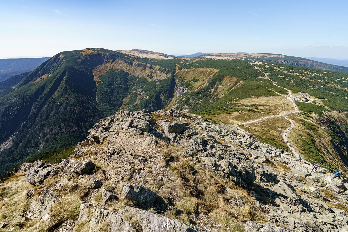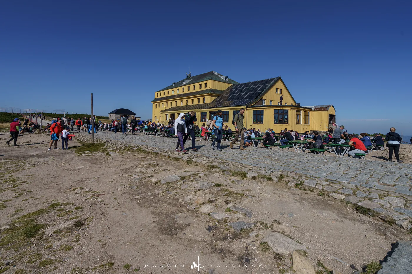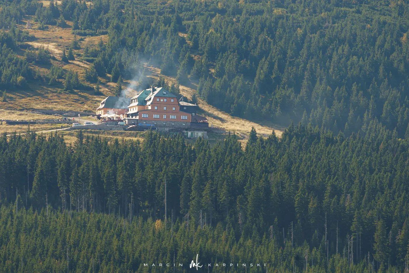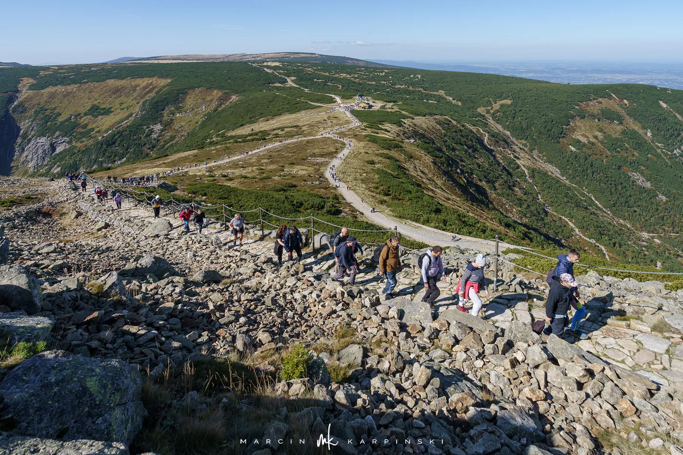 Po krótkim odpoczynku przy schronisku ruszamy w dół. Niebieski szlak prowadzi nas przez las i kosodrzewinę, aż wreszcie wracamy do punktu wyjścia - Świątyni Wang. Cała wędrówka zajęła nam około 8 godzin, a dystans wyniósł blisko 22 km. To wymagająca, lecz niezwykle malownicza trasa, prowadząca przez najbardziej malownicze zakątki Karkonoszy.