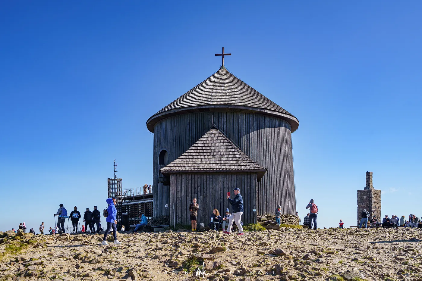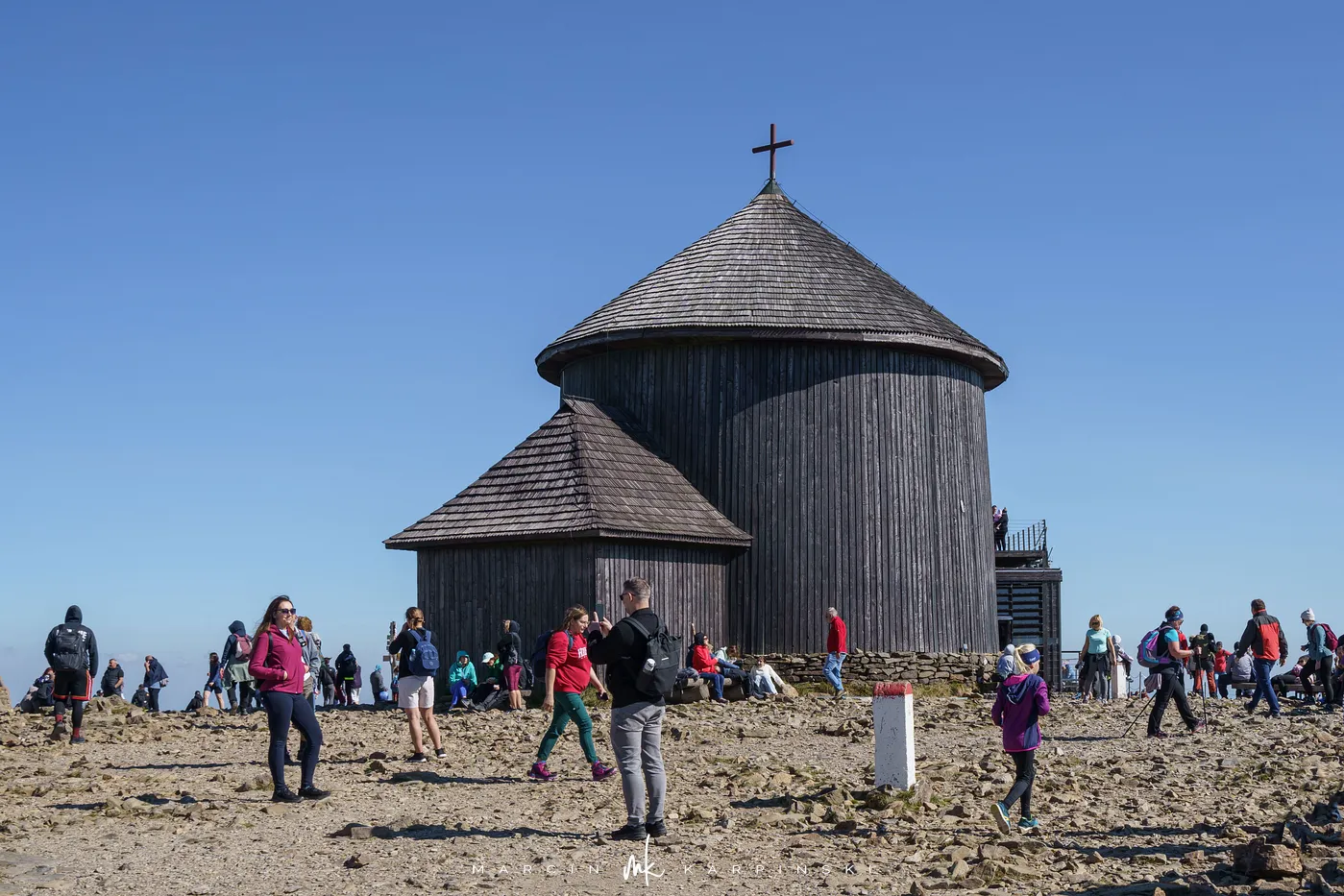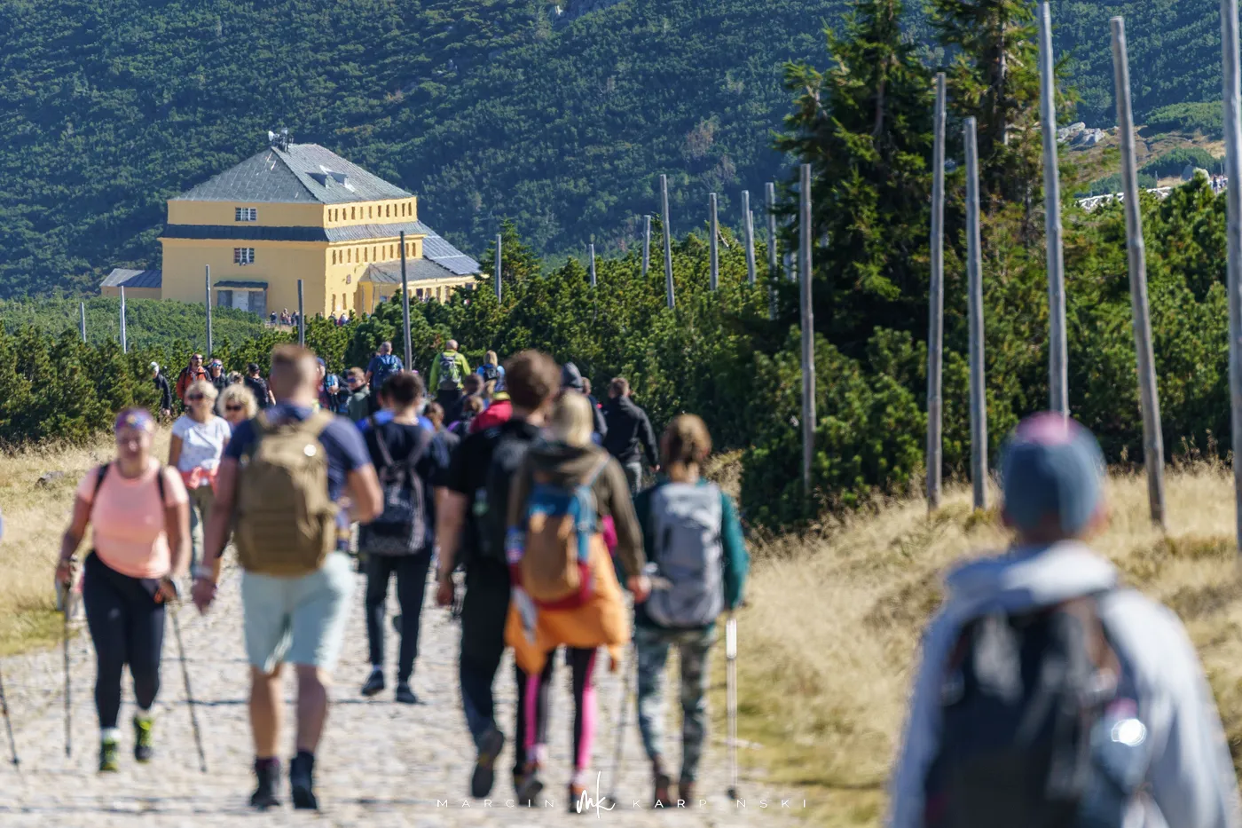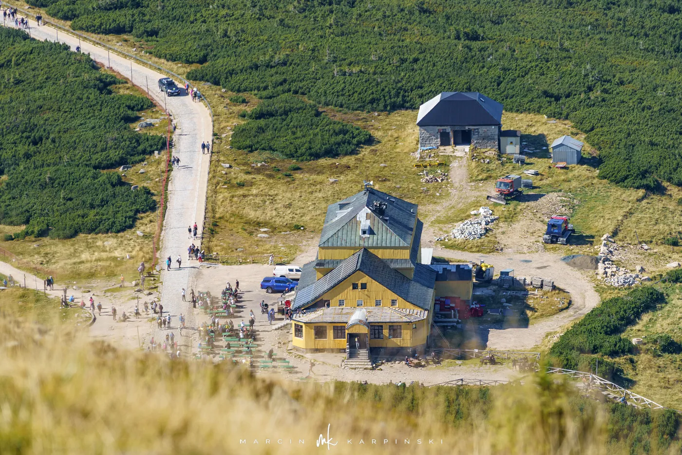 Po krótkim odpoczynku przy schronisku ruszamy w dół. Niebieski szlak prowadzi nas przez las i kosodrzewinę, aż wreszcie wracamy do punktu wyjścia - Świątyni Wang. Cała wędrówka zajęła nam około 8 godzin, a dystans wyniósł blisko 22 km. To wymagająca, lecz niezwykle malownicza trasa, prowadząca przez najbardziej malownicze zakątki Karkonoszy.