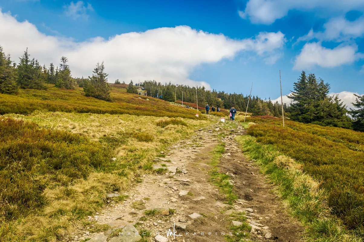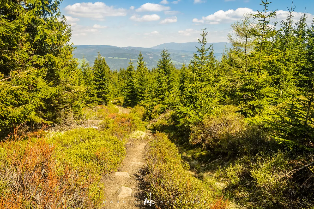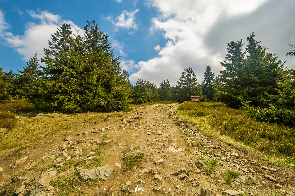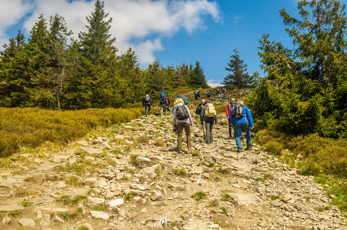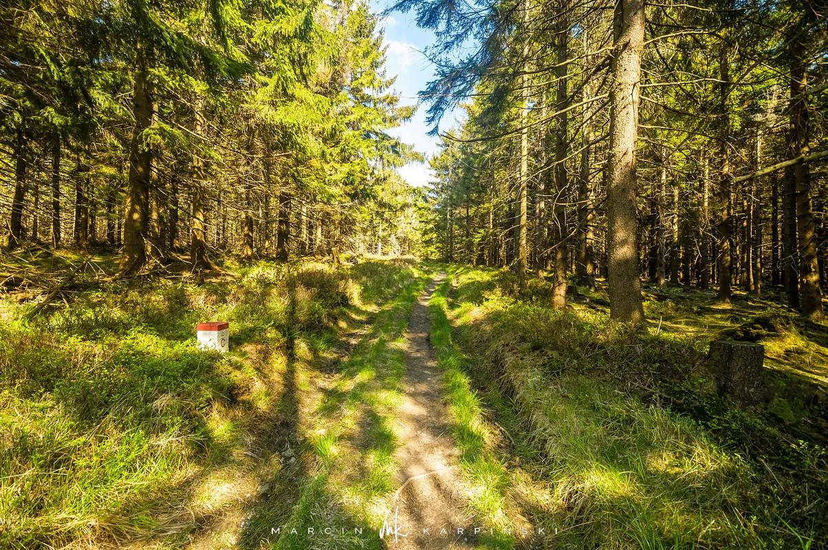 Na Przełęczy Płoszczyna wchodzimy na szlak oznaczony kolorem żółtym, który to przez Przełęcz Staromorawską po niecałej półtorej godzinie i przebyciu pięciu kilometrów doprowadzi nas do punktu rozpoczęcia wyprawy w Bolesławowie.