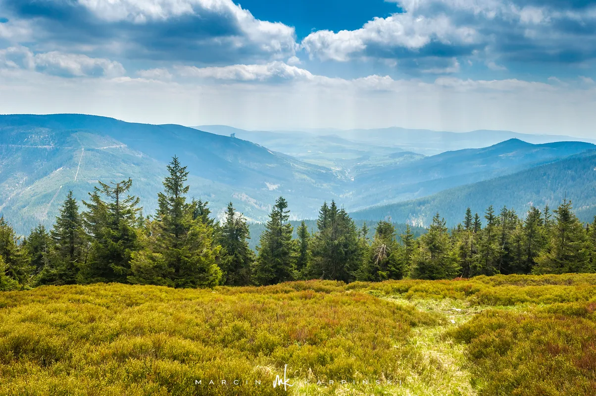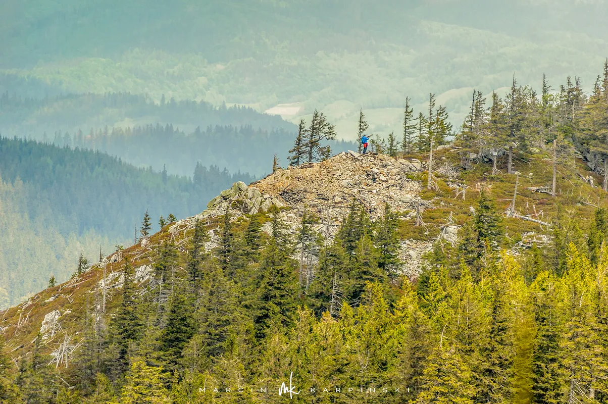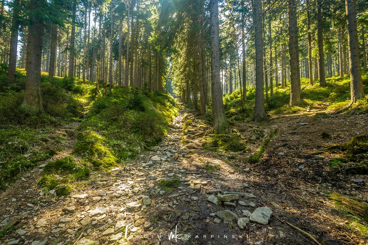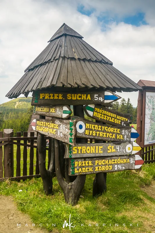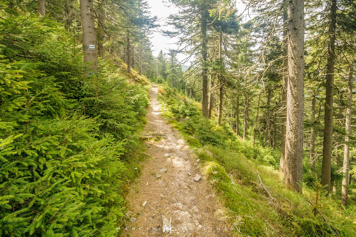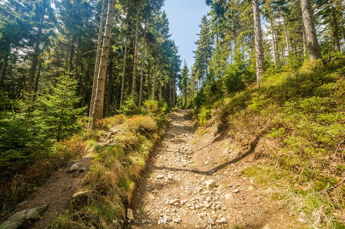 Na Przełęczy Płoszczyna wchodzimy na szlak oznaczony kolorem żółtym, który to przez Przełęcz Staromorawską po niecałej półtorej godzinie i przebyciu pięciu kilometrów doprowadzi nas do punktu rozpoczęcia wyprawy w Bolesławowie.