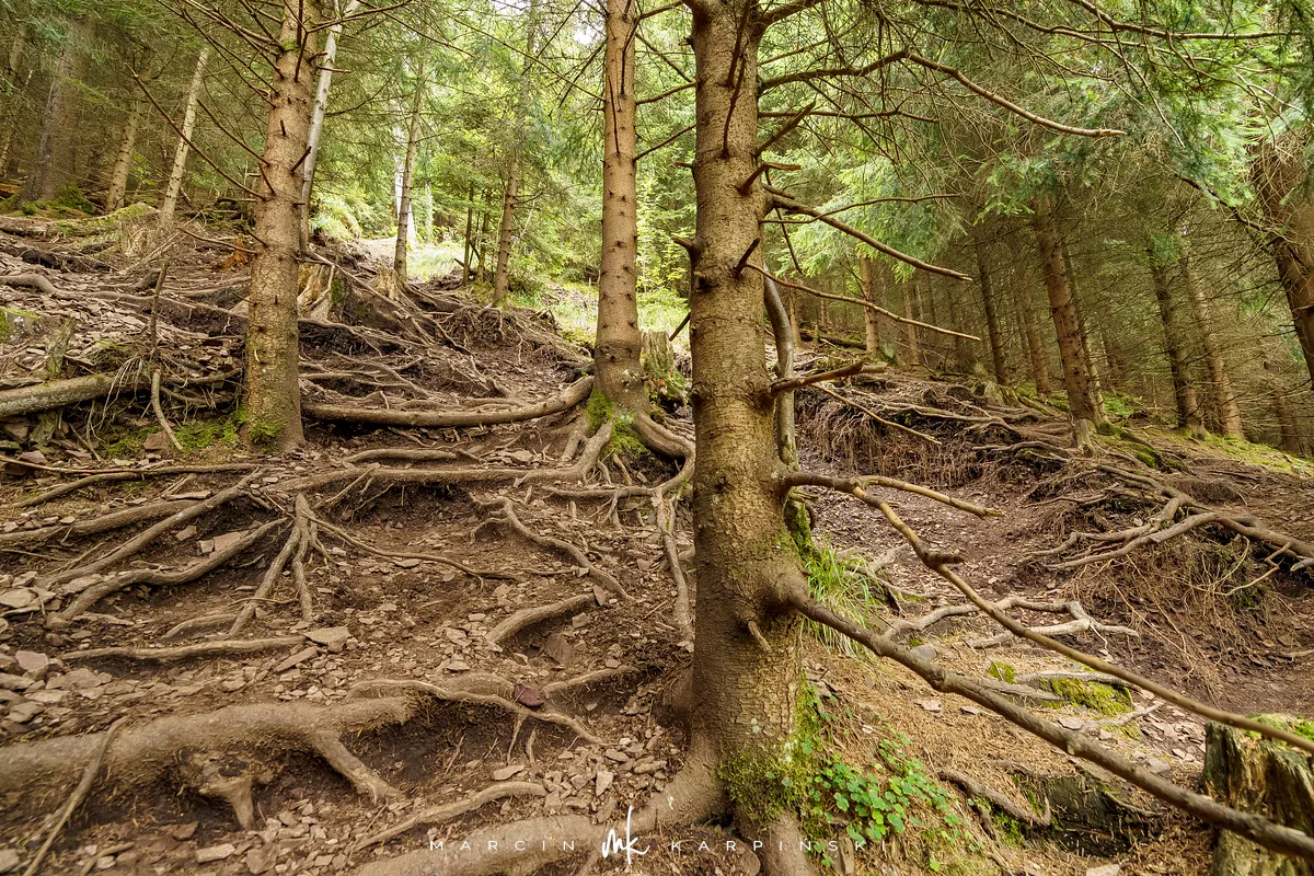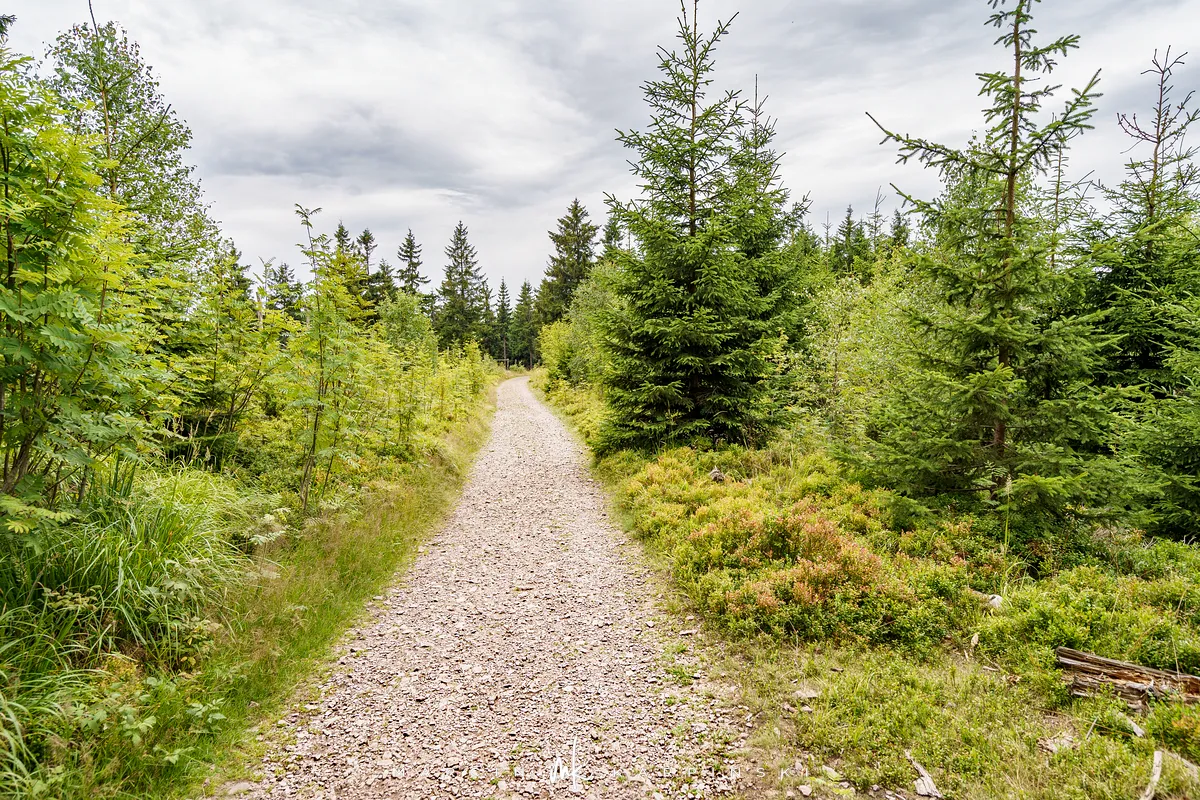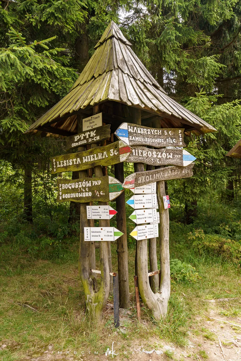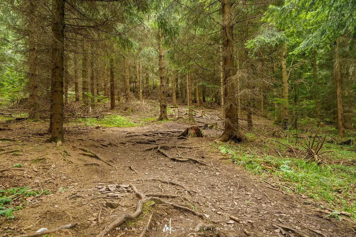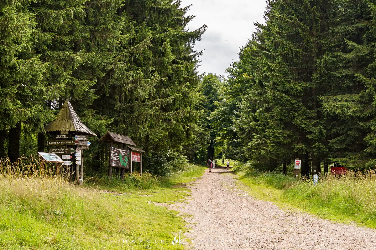 na południe, w kierunku rozdroża pod Waligórą. Docieramy tam po niecałych 30 minutach. Następnie zmieniamy szlak na niebieski