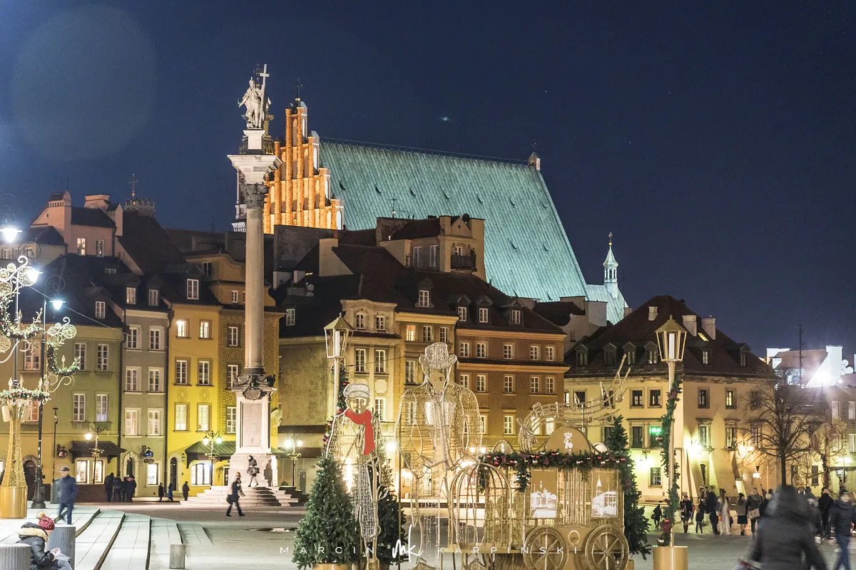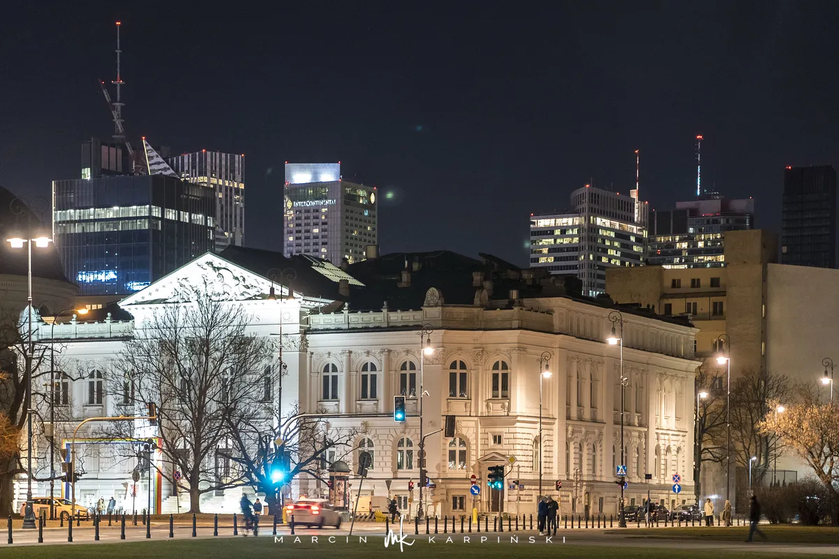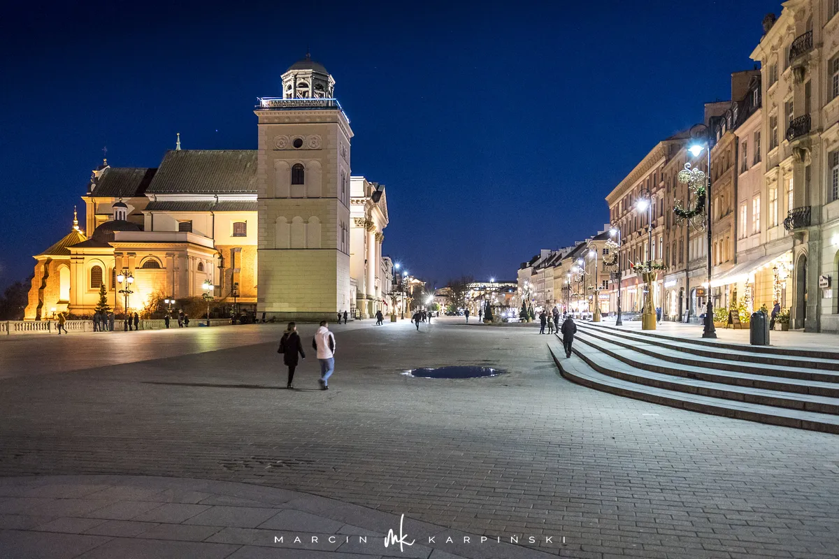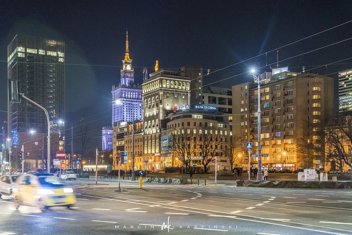 Zapraszam na spacer po Warszawie. Jesteśmy w Śródmieściu. Wieczór i zimowa pora ułatwiają przemieszczanie się pieszo po centrum Warszawy. Oświetlone budynki i ulice sprawiają, że stolica staje się dla turysty jeszcze bardziej atrakcyjna.