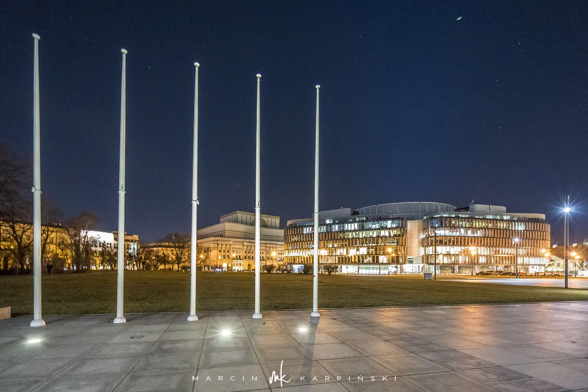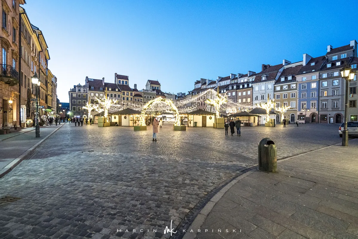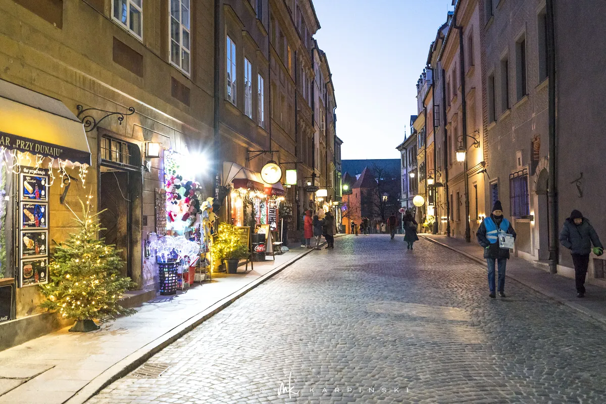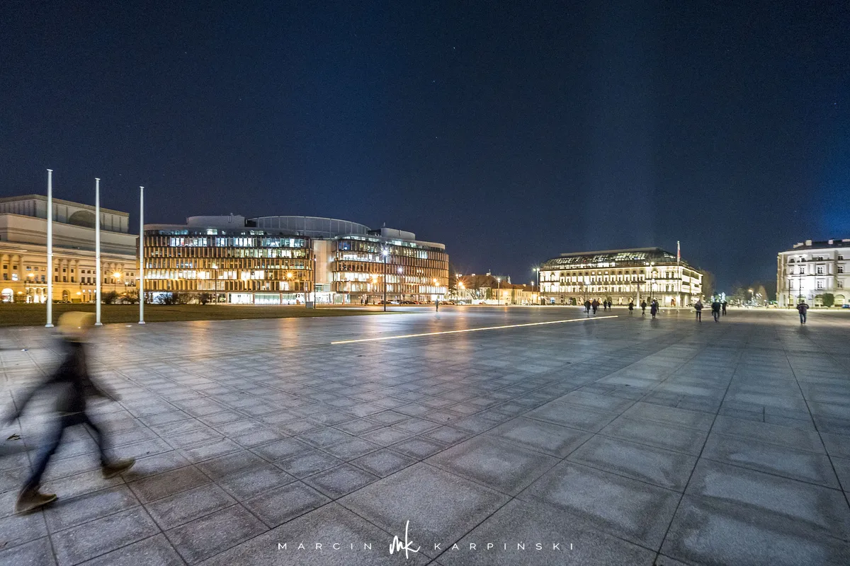 Zapraszam na spacer po Warszawie. Jesteśmy w Śródmieściu. Wieczór i zimowa pora ułatwiają przemieszczanie się pieszo po centrum Warszawy. Oświetlone budynki i ulice sprawiają, że stolica staje się dla turysty jeszcze bardziej atrakcyjna.