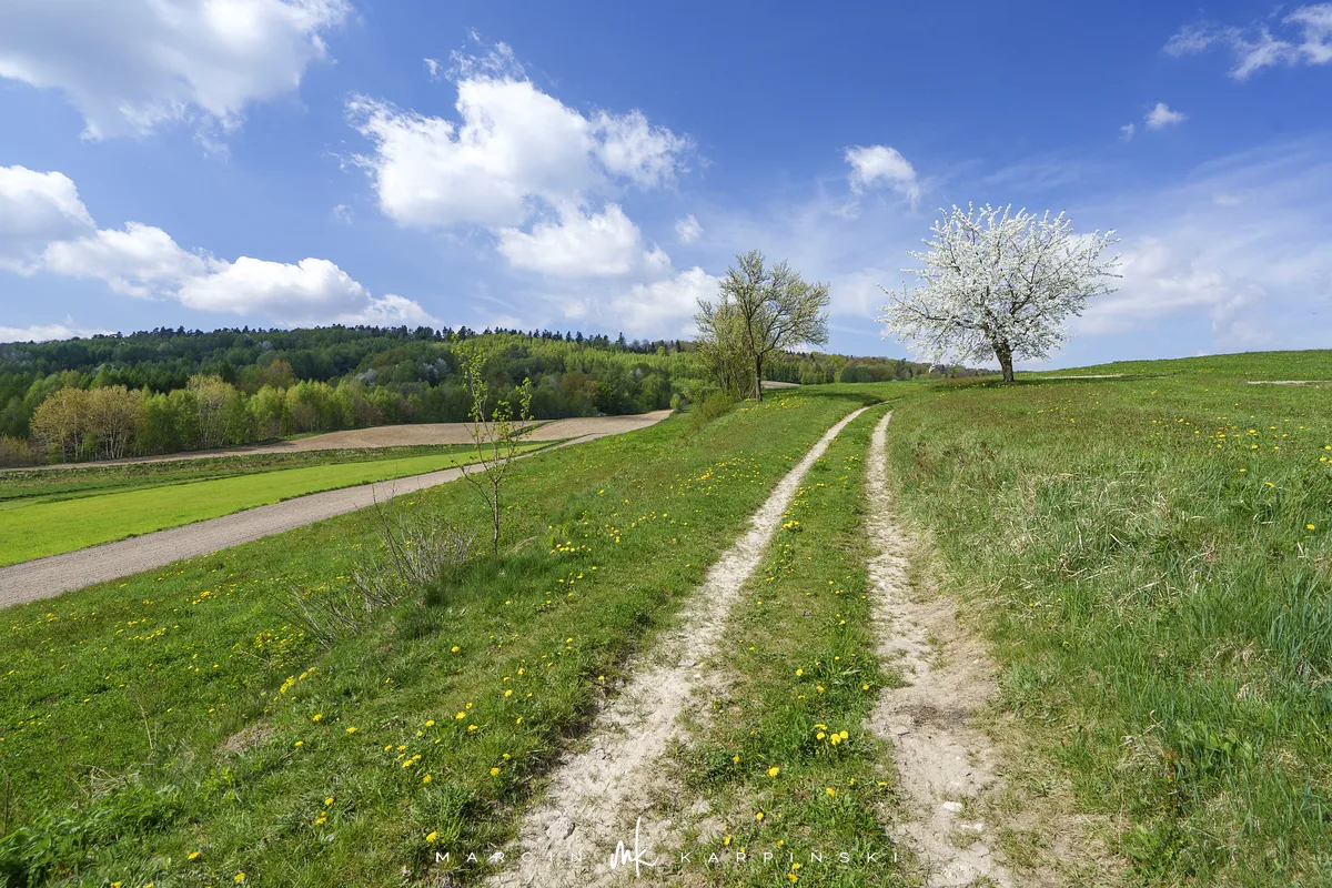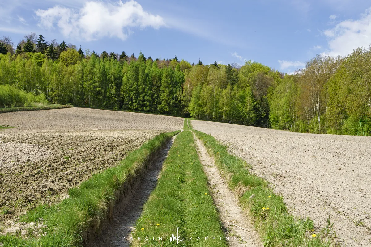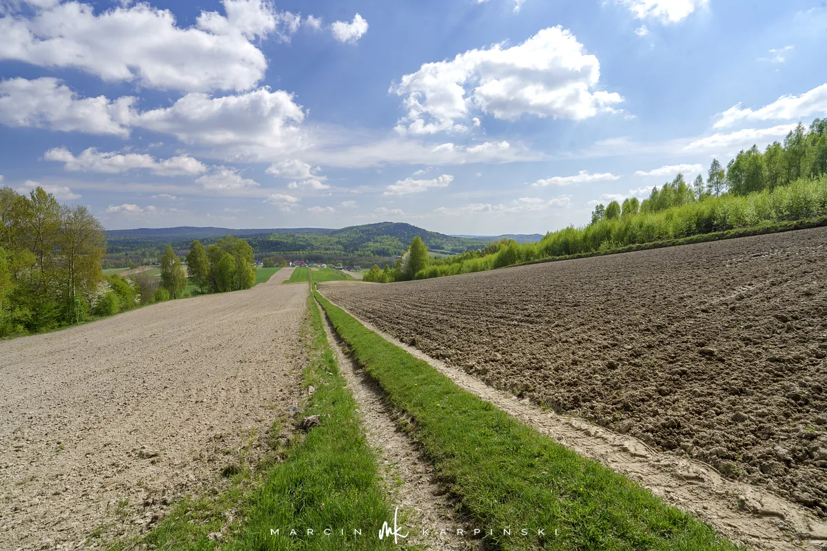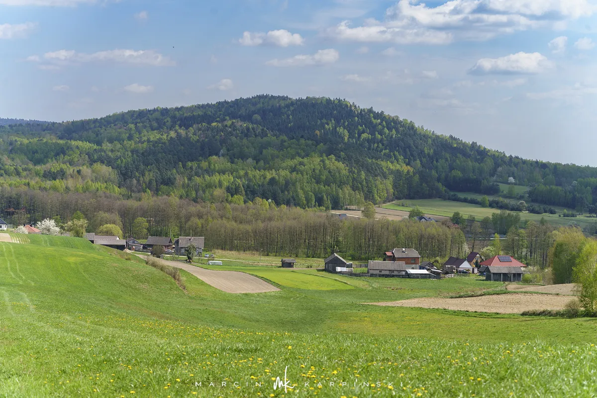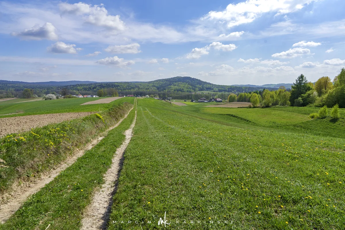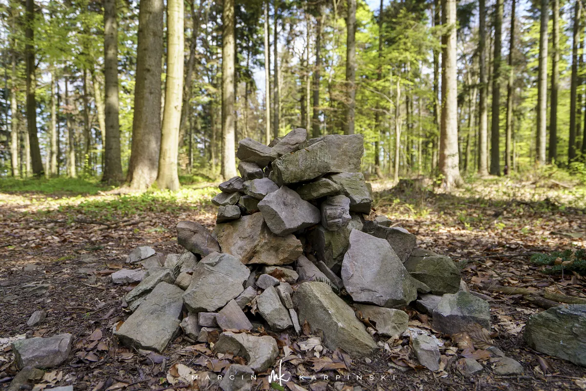 My wybraliśmy trasę z Widełek. Wyruszając z tej lokalizacji, trzeba się liczyć z tym, że nie znajdziemy tu parkingu i trzeba będzie zostawić samochód gdzieś przy drodze. Od razu wchodzimy na niebieski szlak. Przechodzimy między zabudowaniami. Polna droga wśród pól szybko pnie się do góry. To najbardziej widowiskowa część wędrówki. Po około ośmiuset metrach dochodzimy na skraj lasu. Dalszy odcinek trasy już do samego szczytu biegnie lasem. Szlak jest dobrze oznakowany. Ze względu na to, że szczyt nie znajduje się przy szlaku ważne jest, aby przy słupku oznaczonym liczbami 80/80/65/66 skręcić w prawo, w wyraźnie odznaczającą się ścieżkę. Ścieżką wędrujemy około 250 metrów i skręcamy z niej w lewą stronę w las. Pomiędzy drzewami powinniśmy zobaczyć tablicę informacyjną z nazwą szczytu. Na ostatnim odcinku wędrówki bardzo pomocna okazuje się mapa w telefonie z aktualną lokalizacją GPS. Na szczyt wchodzimy 40 minut. Droga powrotna tą samą trasą zajmuje nam 35 minut.