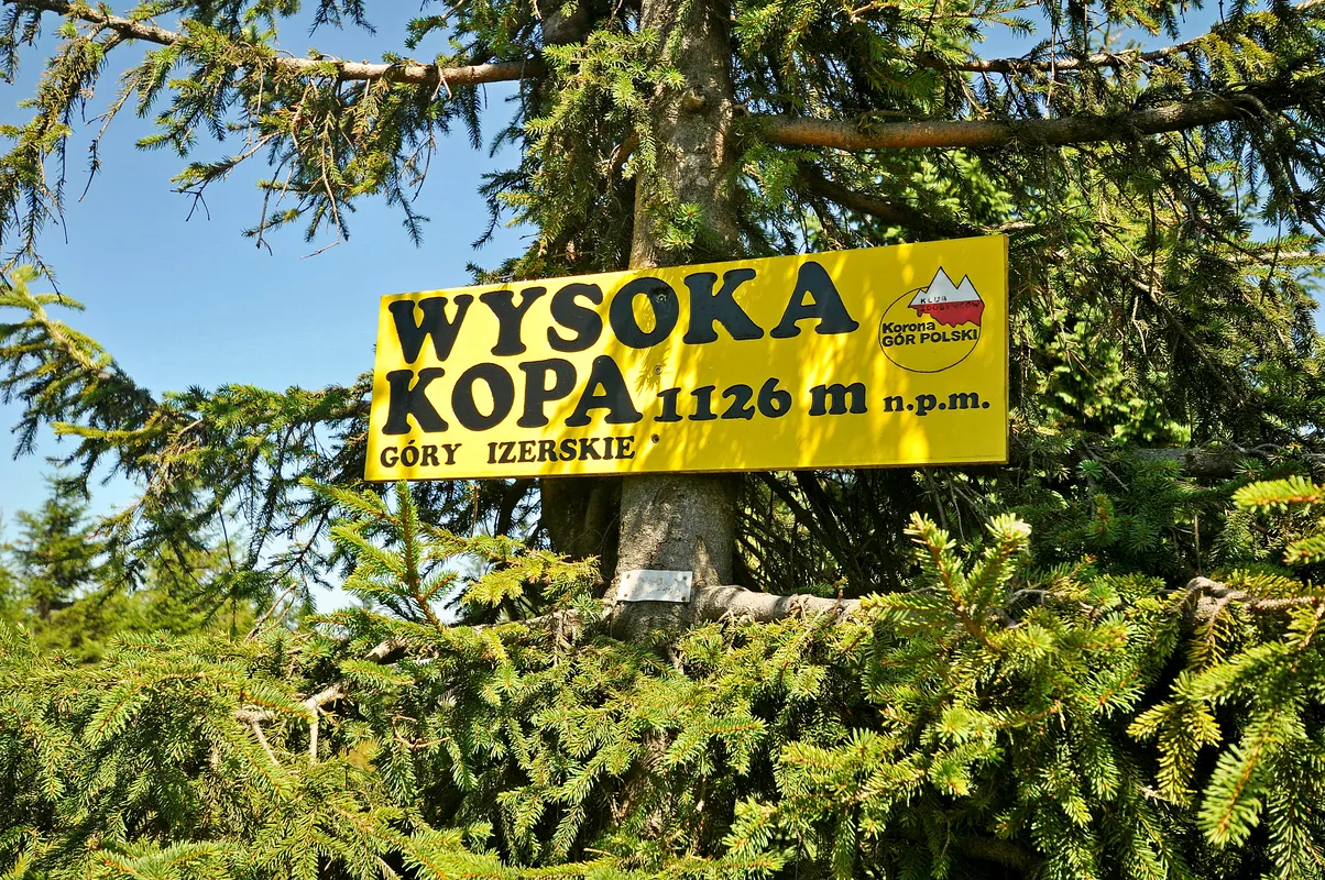 Wysoka Kopa to najwyższe wzniesienie Gór Izerskich. Ma 1126 metrów wysokości i należy do Korony Gór Polski. Aby wejść na jego szczyt, należy ostatni odcinek trasy przebyć poza oznaczonym szlakiem. Trudu jego zdobycia nie wynagrodzą nam wspaniałe widoki - bo ich niestety nie ma.
