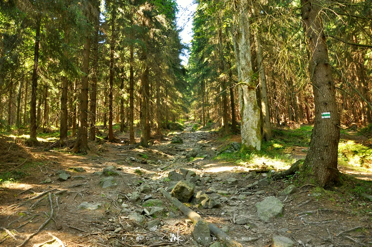 Wędrówkę przez Góry Izerskie rozpoczynamy z parkingu na Rozdrożu Izerskim. Do Wysokiej Kopy możemy dojść żółtym szlakiem do Rozdroża pod Kopą, a później czerwonym przez Sine Skałki i Przednią Kopę, bądź też zielonym przez Rozdroże pod Zwaliskiem i Zwalisko, a dalej czerwonym w kierunku Rozdroża pod Kopą. Wybieramy tą drugą drogę - krótszą, lecz z bardziej wymagającym podejściem.