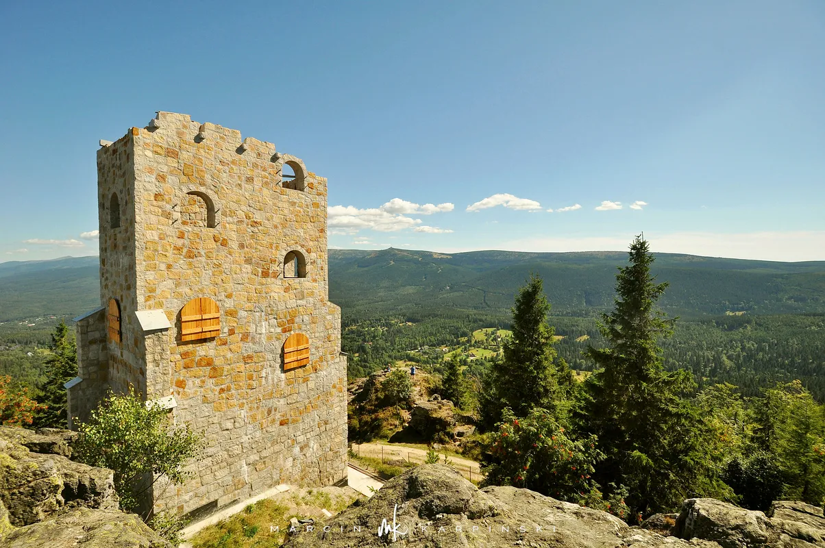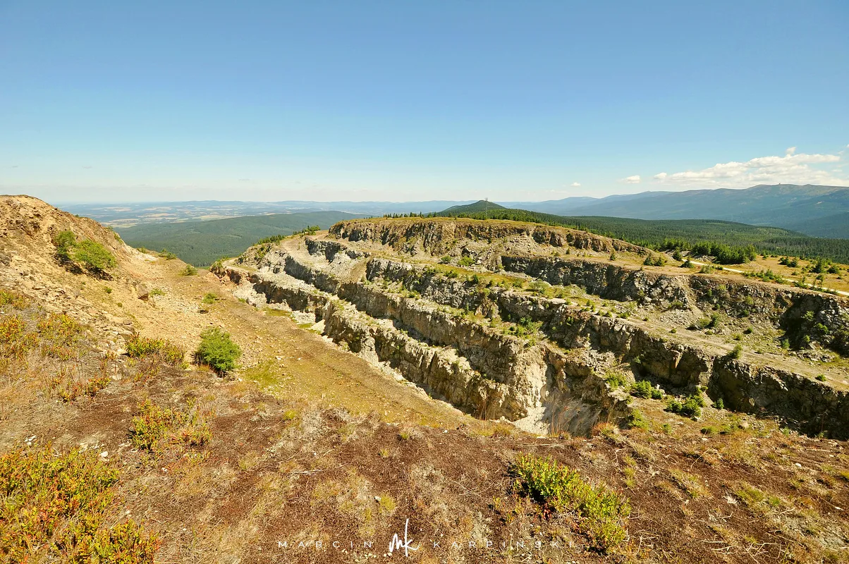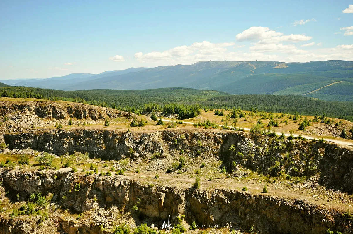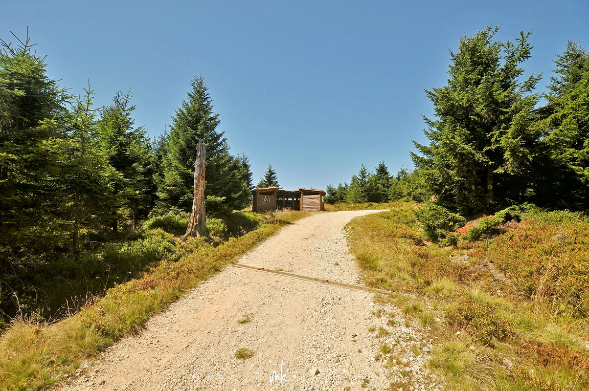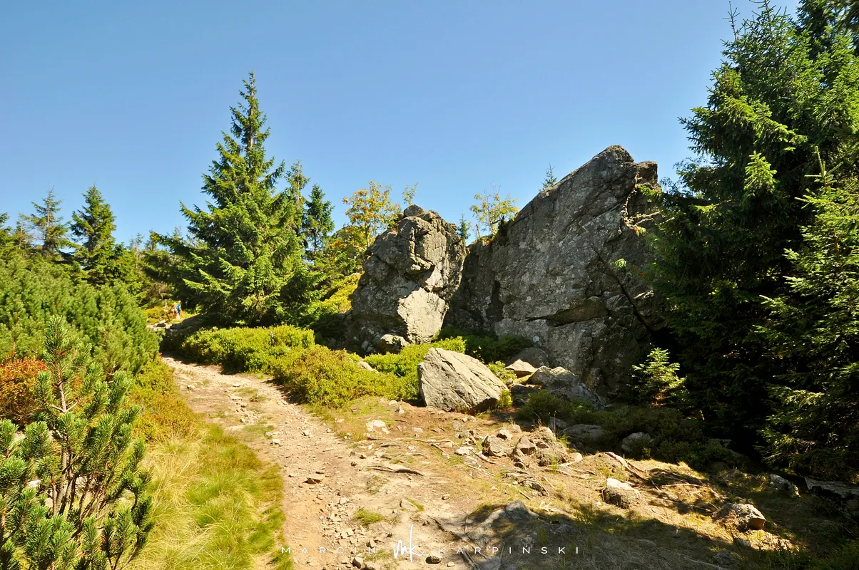 Droga powrotna do Rozdroża pod Zwaliskiem w większości pokrywała się z drogą na szczyt. Skróciliśmy ją trochę i do kopalni kwarcu poszliśmy dla odmiany inną. Od wspomnianego wcześniej rozdroża kontynuowaliśmy wędrówkę czerwonym szlakiem. Na szczycie Wysokiego Kamienia (1058m n.p.m.) znajduje się schronisko, w którym chwilę odpoczęliśmy i posililiśmy się kawałkiem szarlotki. Dalej zejście bez większych atrakcji do stacji PKP Szklarska Poręba Górna.