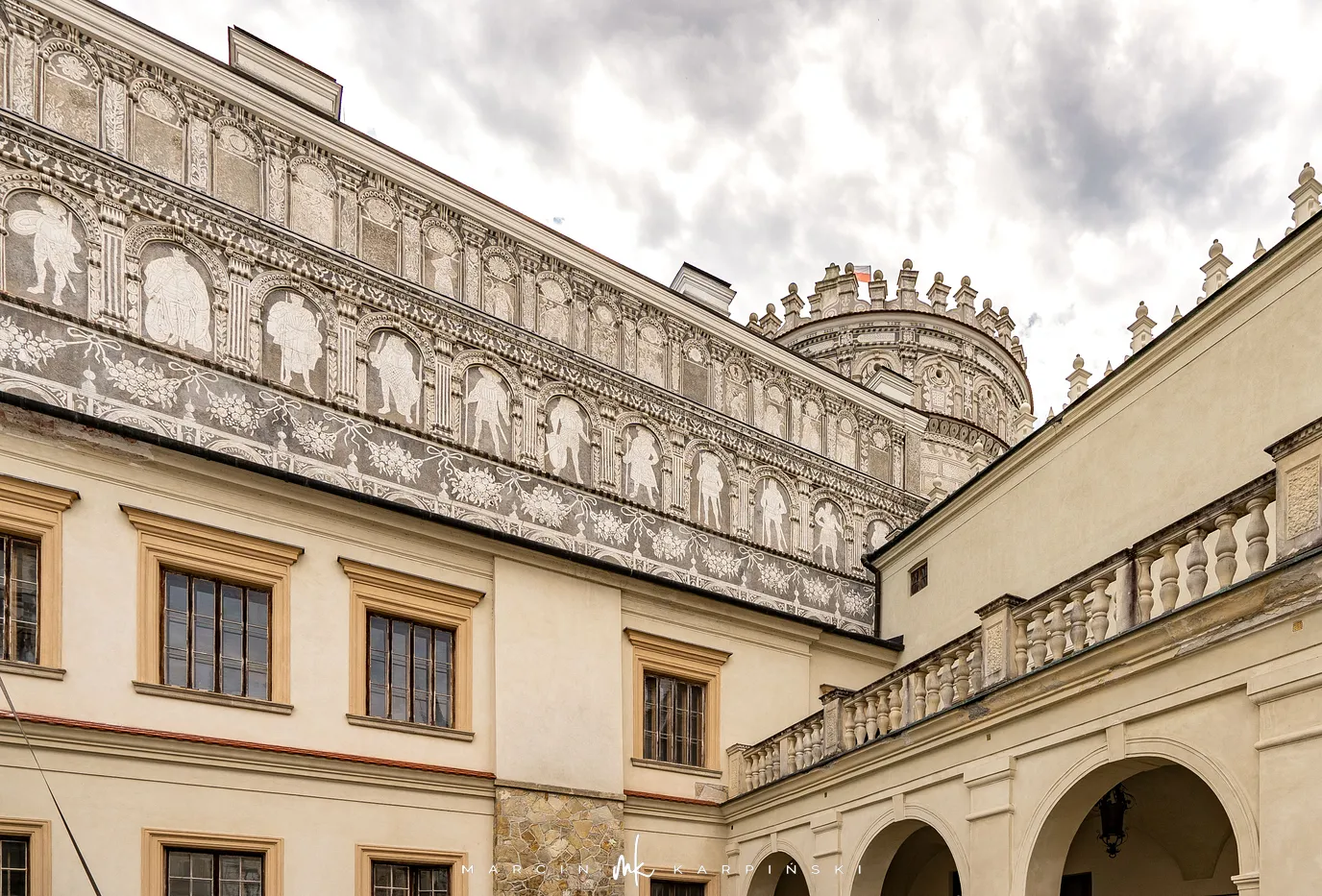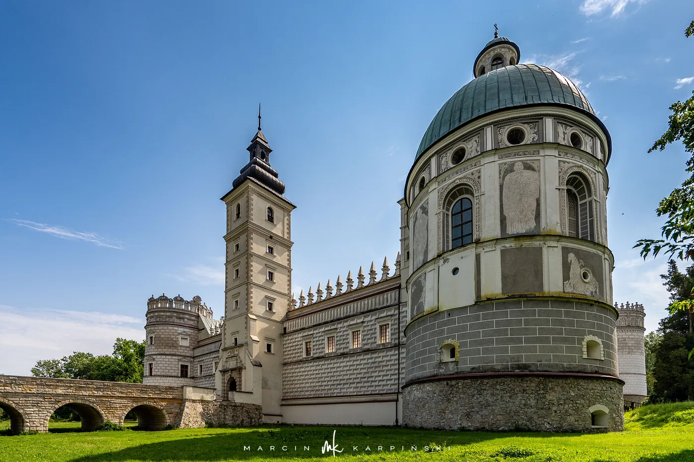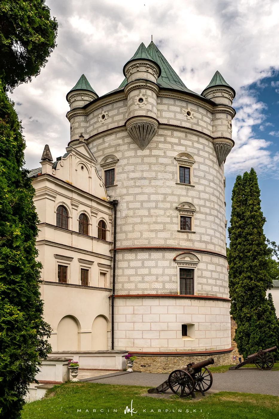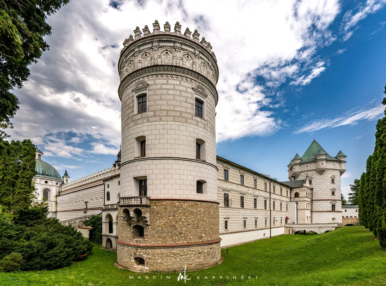 Zamek w Krasiczynie położony jest na Pogórzu Przemyskim, w dolinie Sanu, nieopodal Przemyśla. Należy do najcenniejszych zabytków polskiego renesansu. Jego budowę rozpoczął pod koniec XVI wieku kasztelan krakowski Stanisław Krasicki. Dzieło kontynuował jego syn Marcin Krasicki, który doprowadził zamek do jego ostatecznego, renesansowego kształtu.