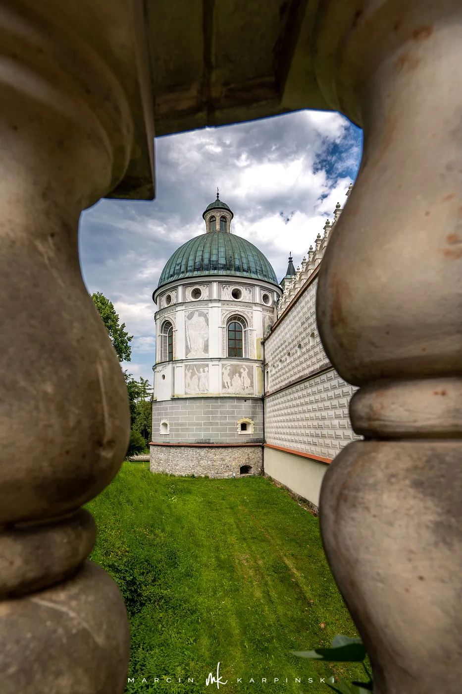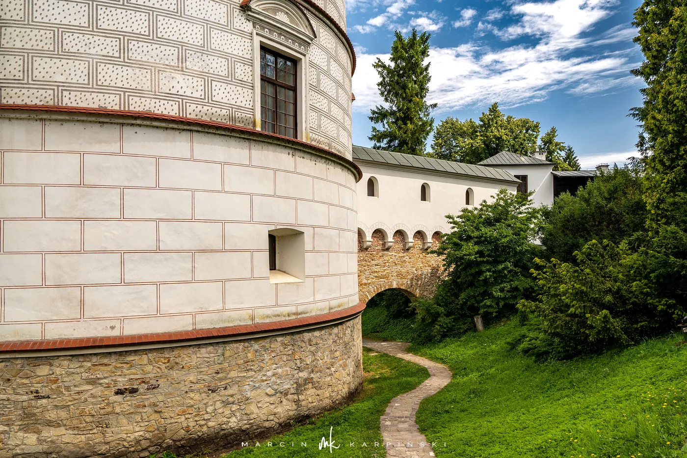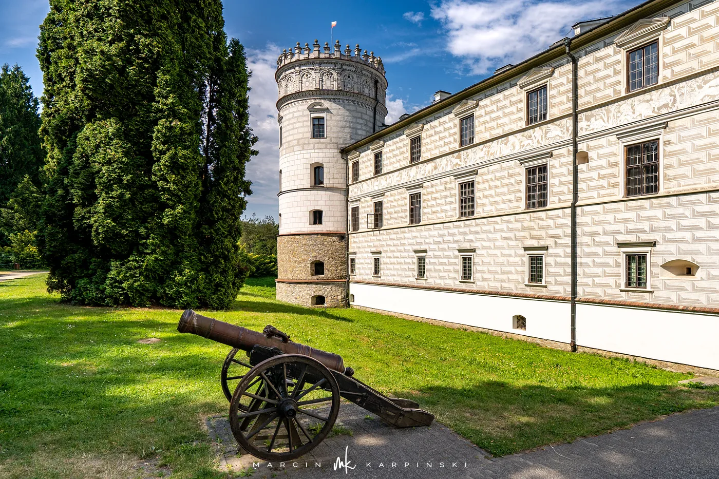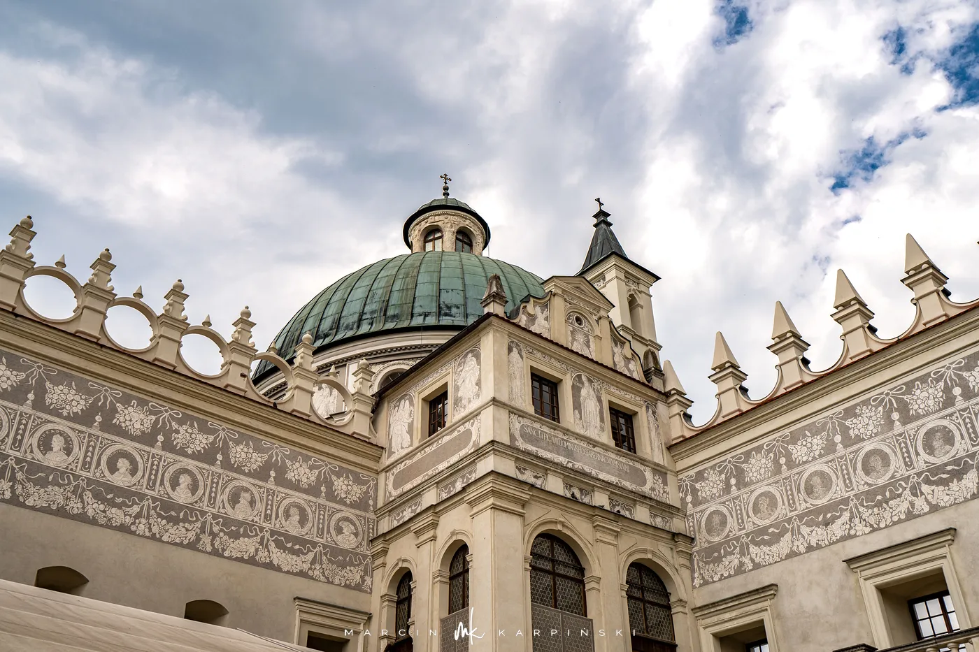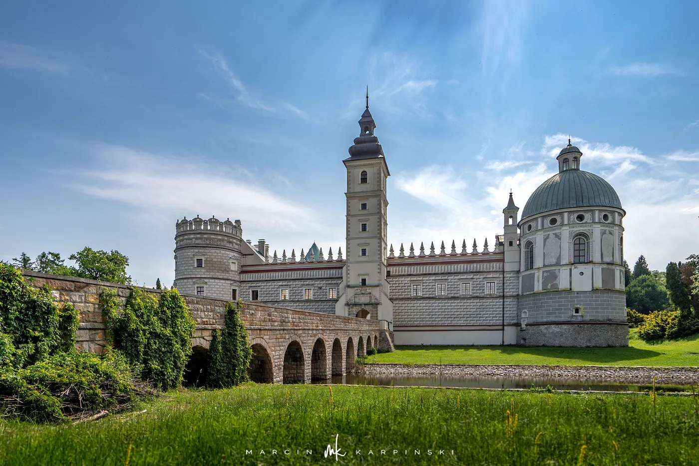 Zamek w Krasiczynie położony jest na Pogórzu Przemyskim, w dolinie Sanu, nieopodal Przemyśla. Należy do najcenniejszych zabytków polskiego renesansu. Jego budowę rozpoczął pod koniec XVI wieku kasztelan krakowski Stanisław Krasicki. Dzieło kontynuował jego syn Marcin Krasicki, który doprowadził zamek do jego ostatecznego, renesansowego kształtu.