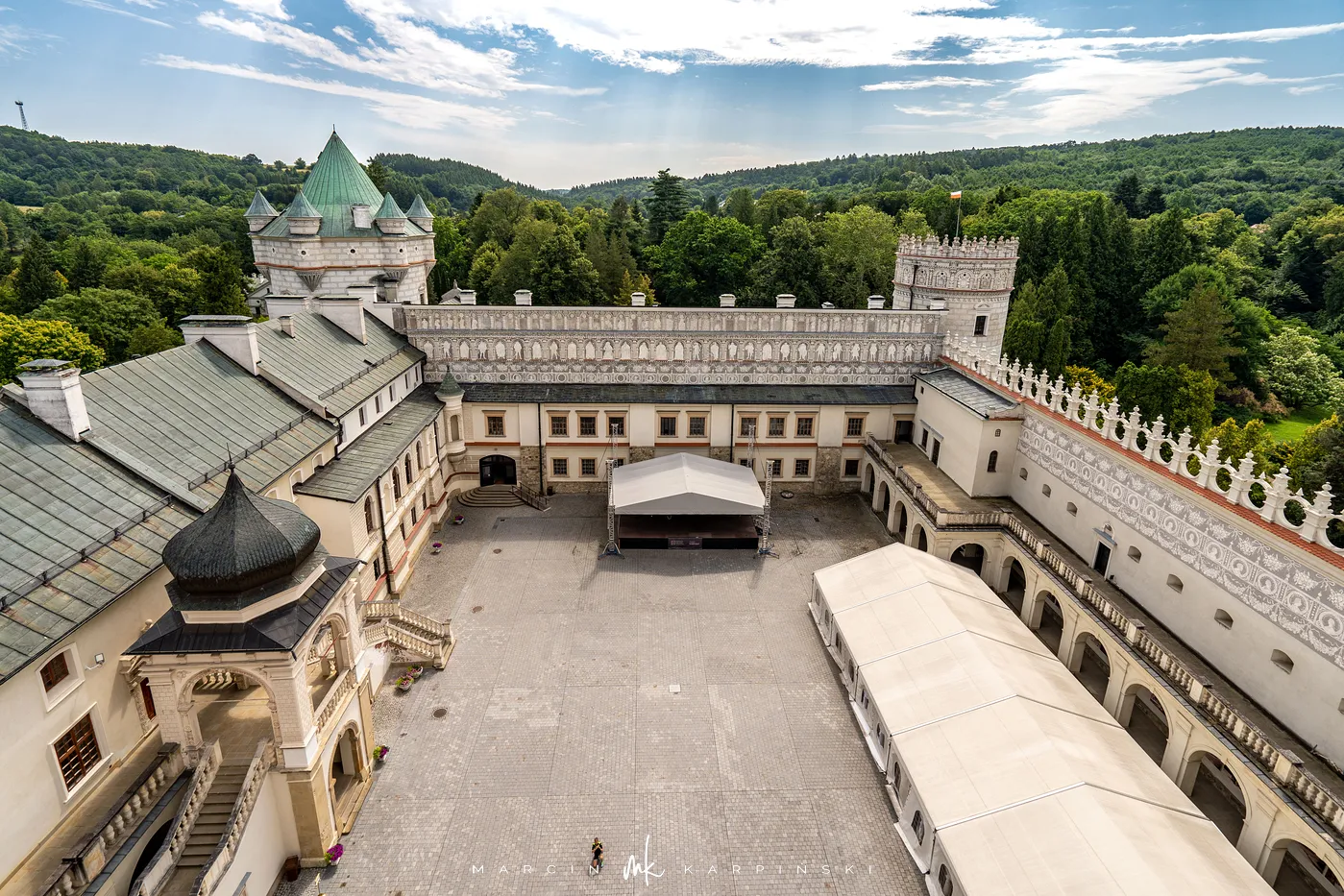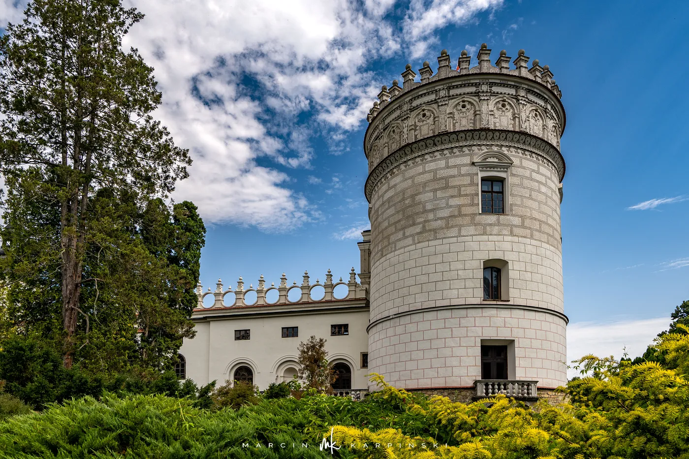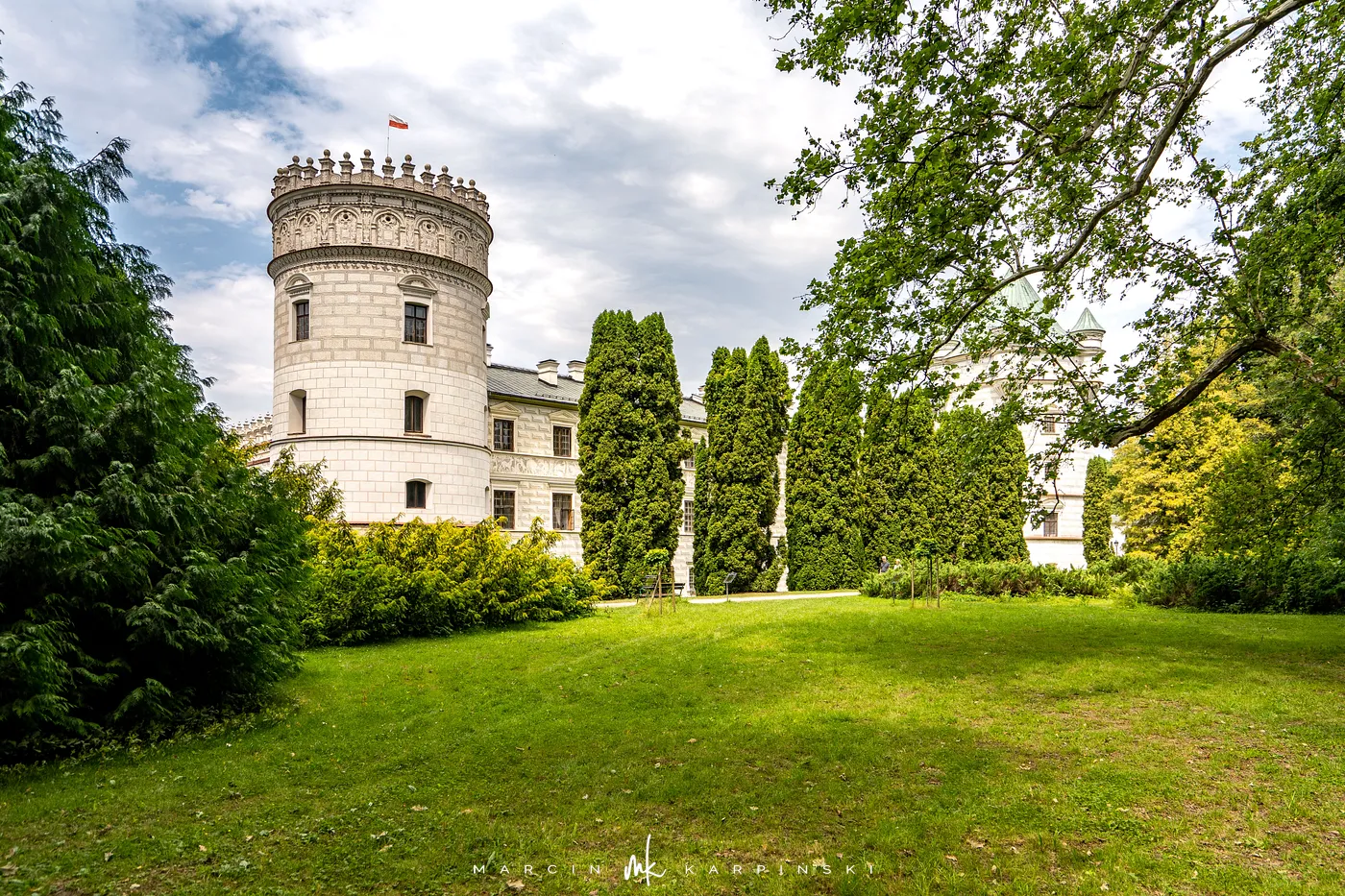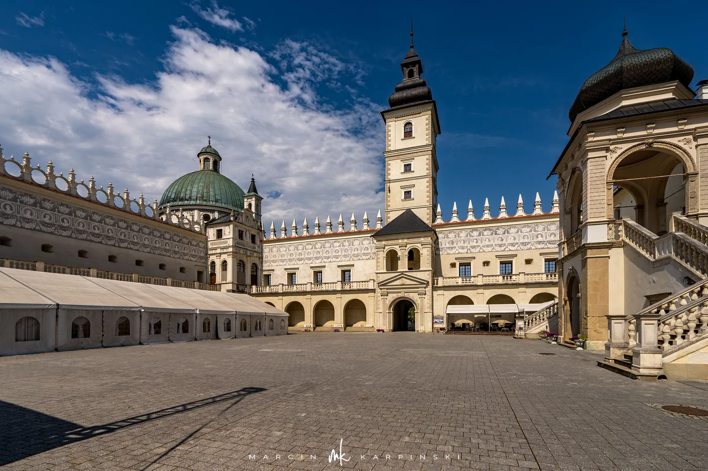Zamek w Krasiczynie położony jest na Pogórzu Przemyskim, w dolinie Sanu, nieopodal Przemyśla. Należy do najcenniejszych zabytków polskiego renesansu. Jego budowę rozpoczął pod koniec XVI wieku kasztelan krakowski Stanisław Krasicki. Dzieło kontynuował jego syn Marcin Krasicki, który doprowadził zamek do jego ostatecznego, renesansowego kształtu.