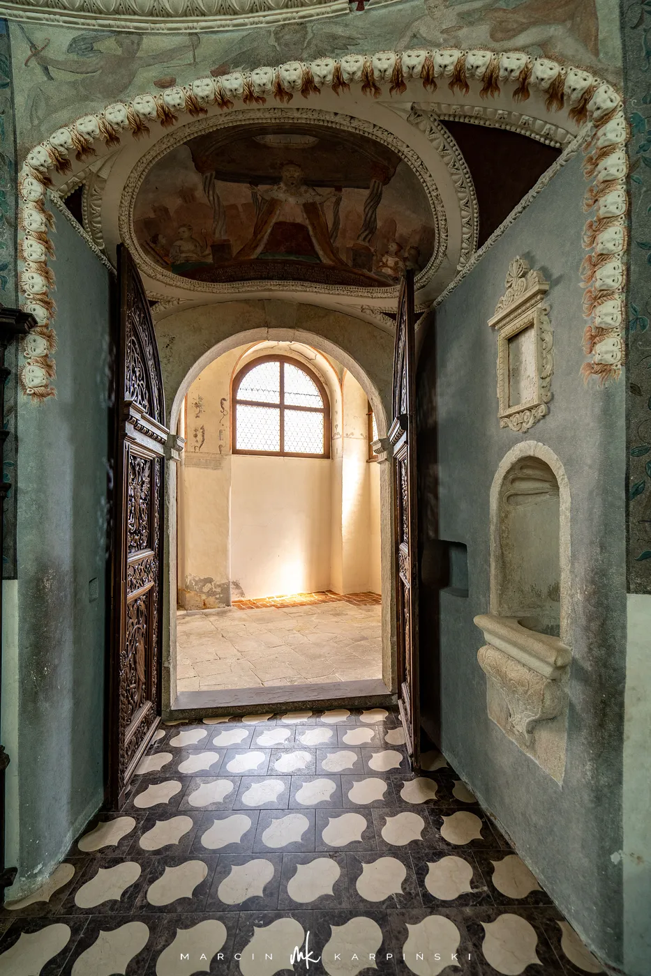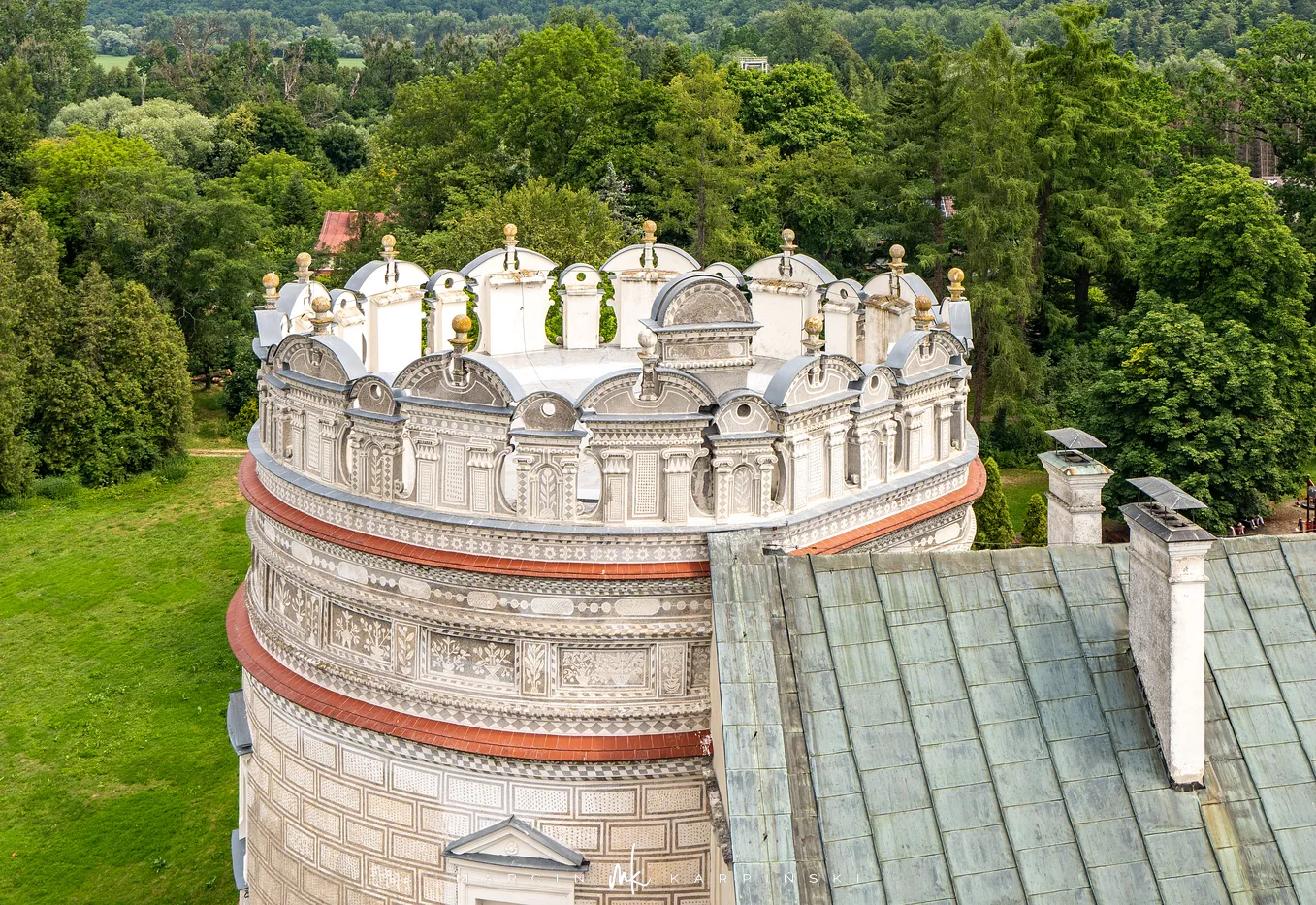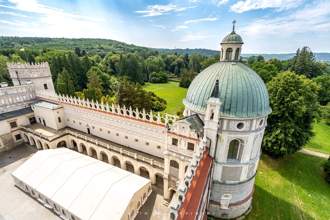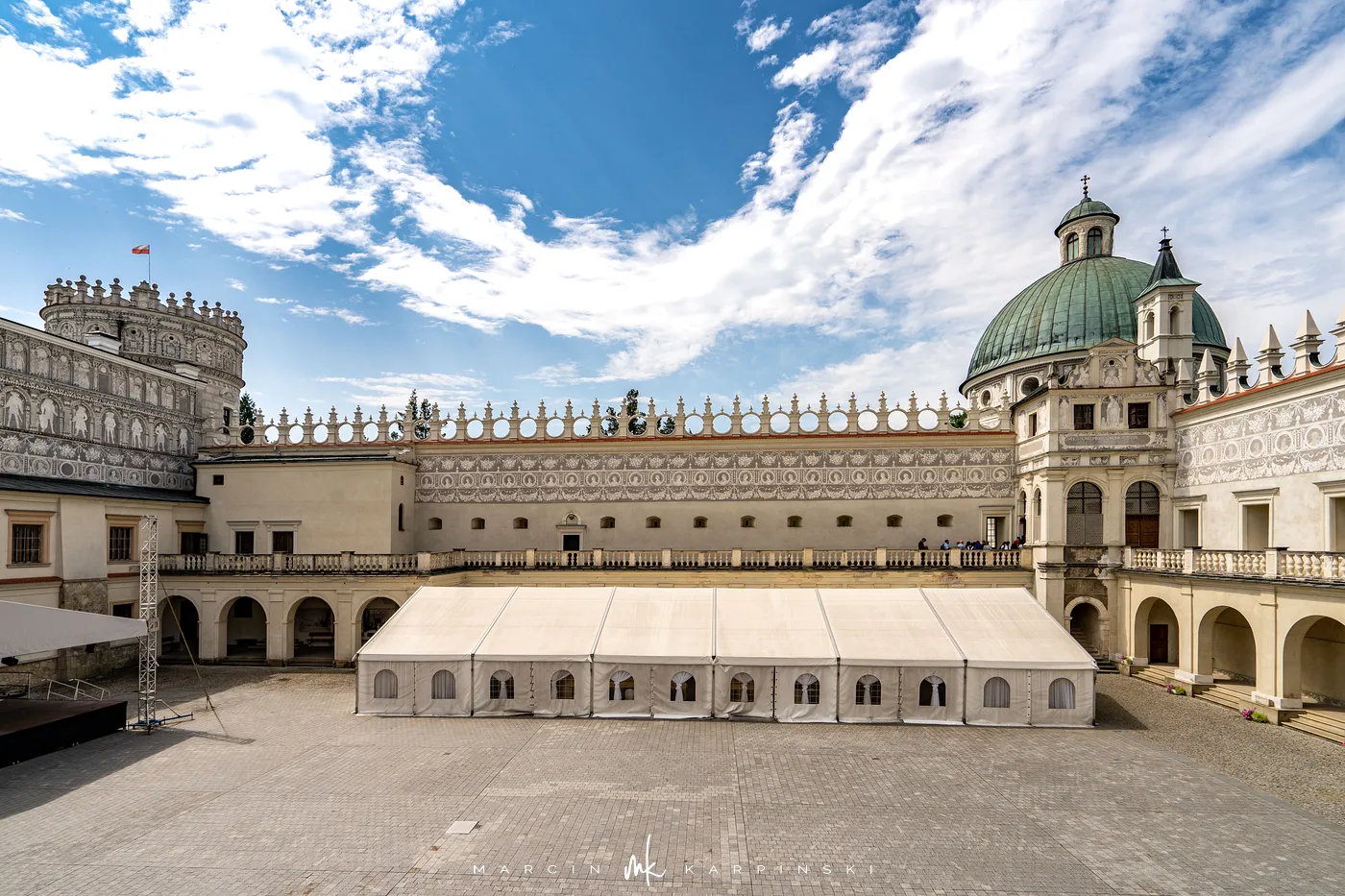 Zamek w Krasiczynie położony jest na Pogórzu Przemyskim, w dolinie Sanu, nieopodal Przemyśla. Należy do najcenniejszych zabytków polskiego renesansu. Jego budowę rozpoczął pod koniec XVI wieku kasztelan krakowski Stanisław Krasicki. Dzieło kontynuował jego syn Marcin Krasicki, który doprowadził zamek do jego ostatecznego, renesansowego kształtu.