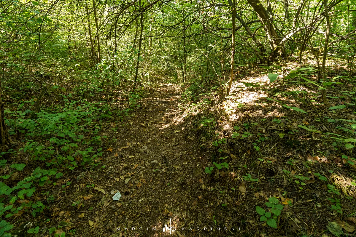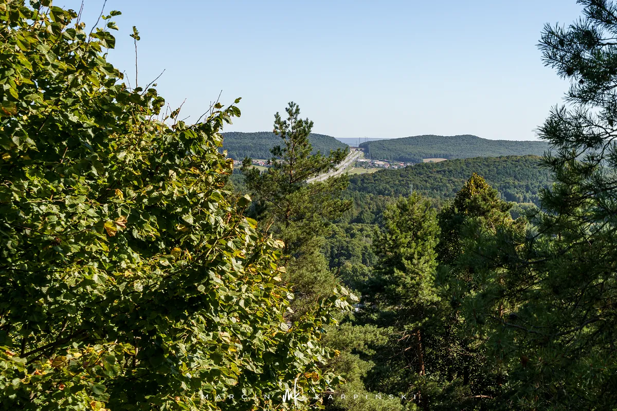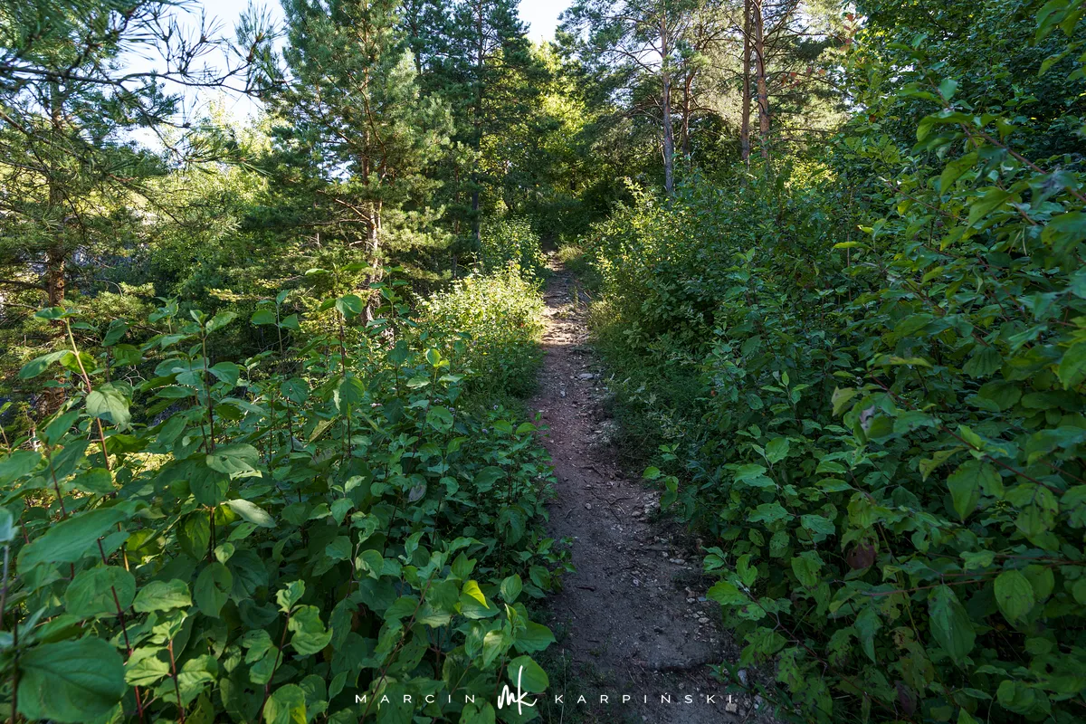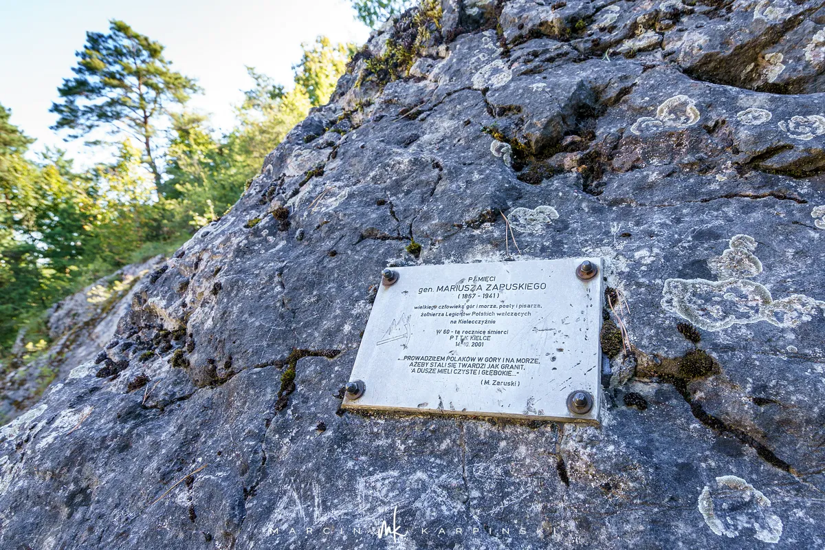 Po powrocie na szlak, dalsza droga wiedzie przez wapienną grań. Choć ten odcinek jest trudniejszy, warto go przejść, ponieważ jest to najdłuższa grań wapienna w Górach Świętokrzyskich. Po około 200 metrach docieramy do kamieniołomu Szczerba. Na ścianach kamieniołomu można zobaczyć ślady wydobycia w postaci półek skalnych i otworów wiertniczych, a na jego dnie leżą bloki marmuru. Przy kamieniołomie przebiega czerwony szlak turystyczny im. Sylwestra Kowalczewskiego, prowadzący z Kielc do Chęcin. Schodzimy nim w dół do ulicy Zamkowej, którą początkowo idziemy niebieskim szlakiem, a następnie bez oznaczeń docieramy na parking.